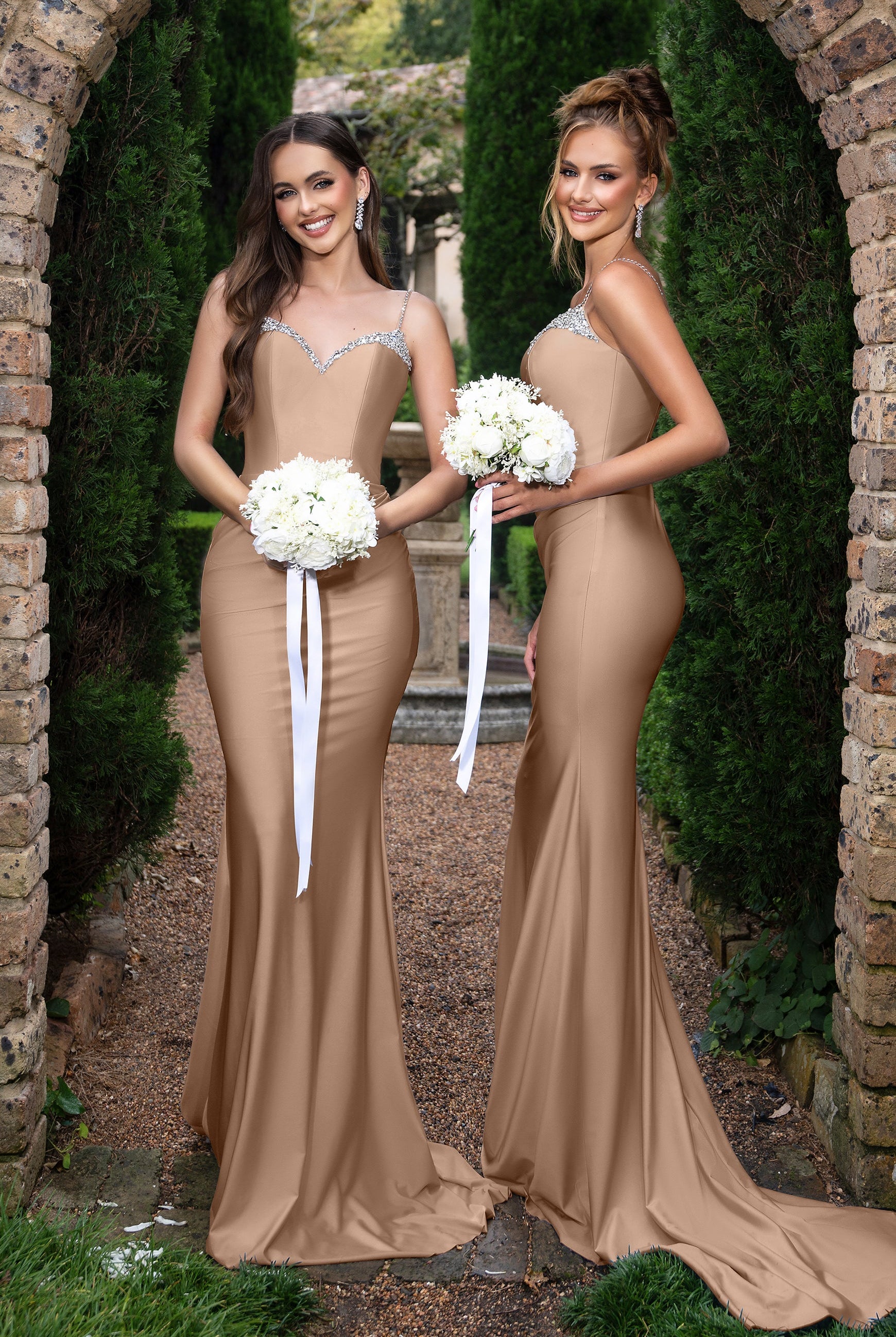 Our collection of brown bridesmaid dresses features an array of modern silhouettes designed to celebrate their individual style while creating a harmonious and breathtaking vision. These gowns tell a story of natural beauty and refined grace, creating a look that is both striking and unforgettable.