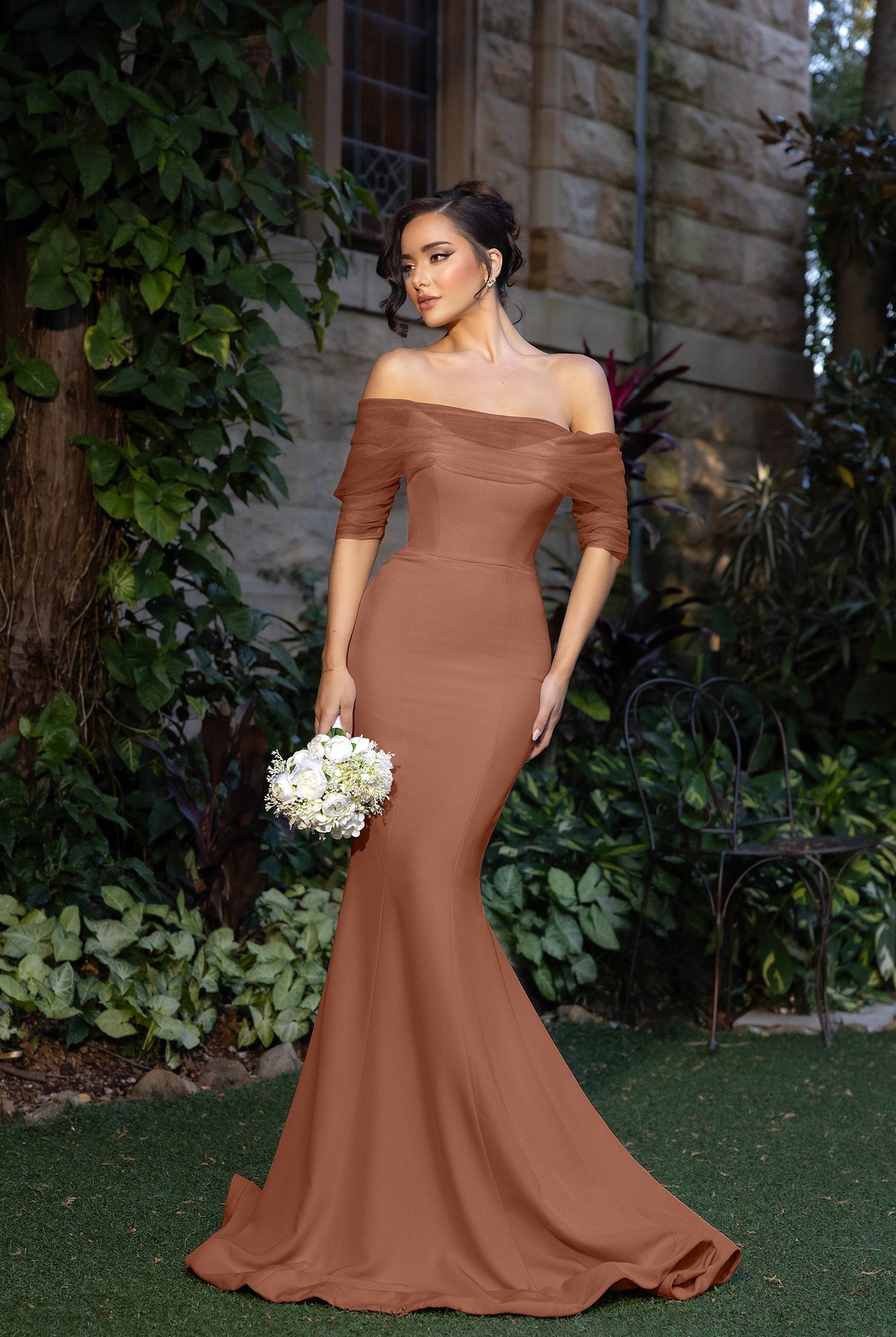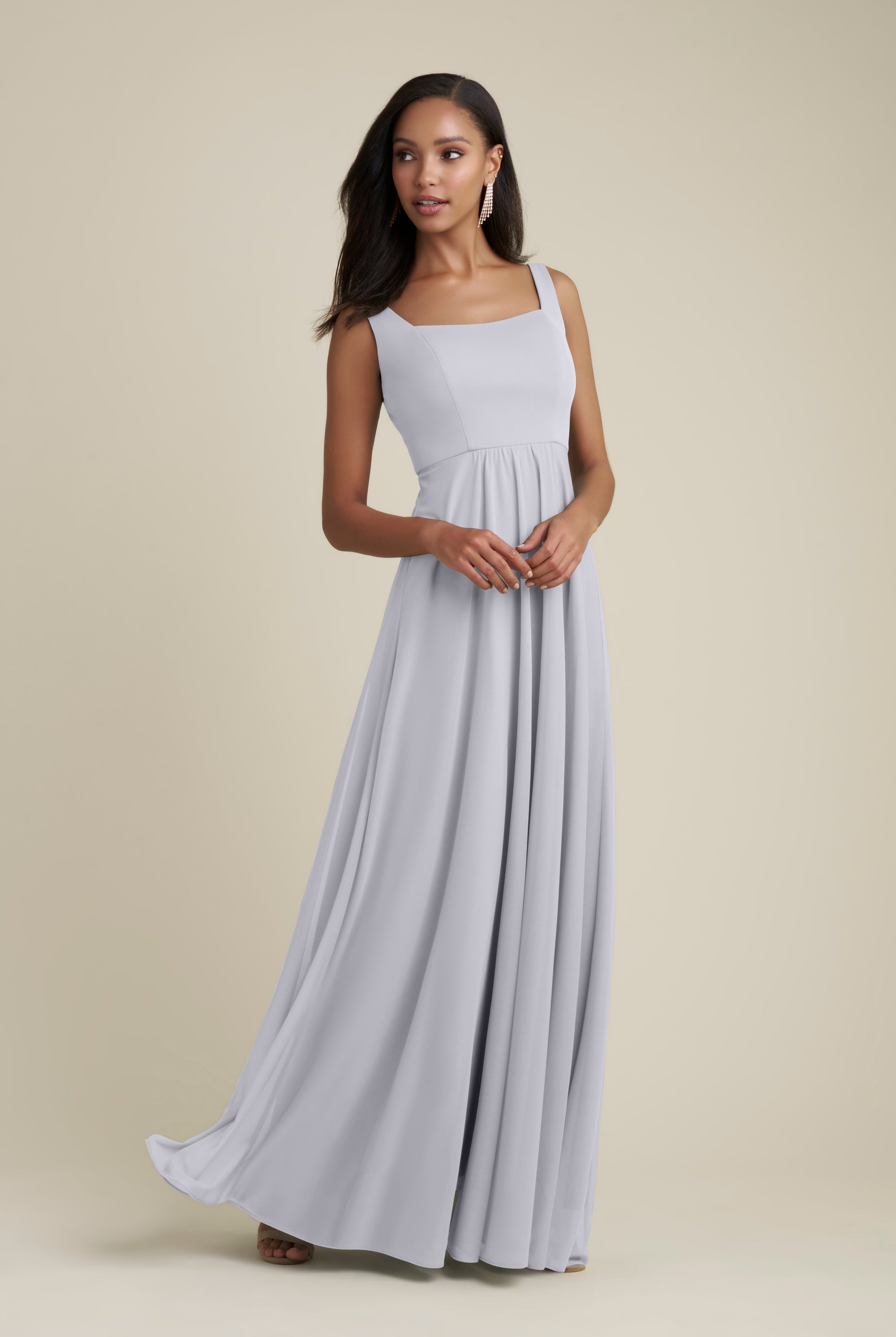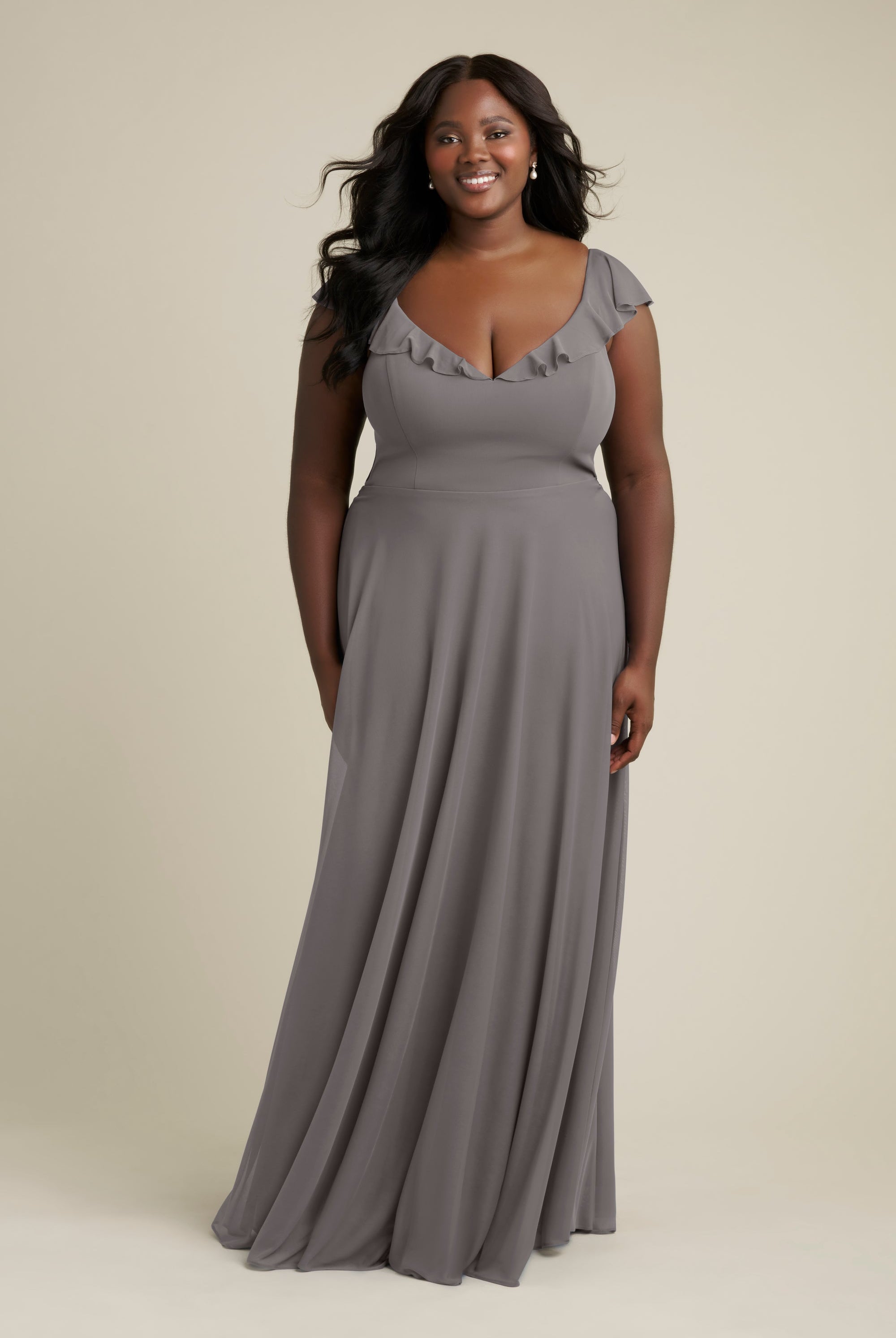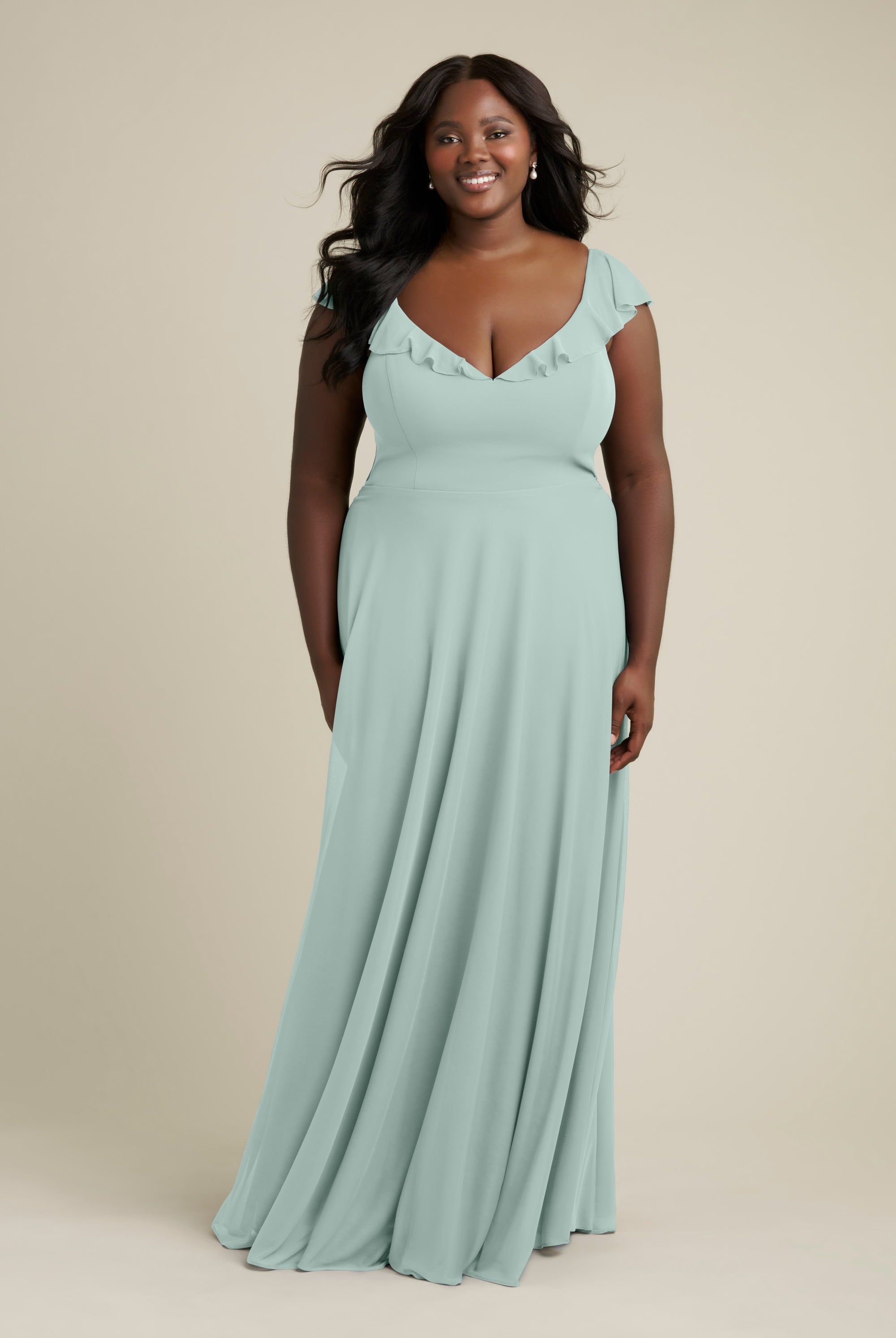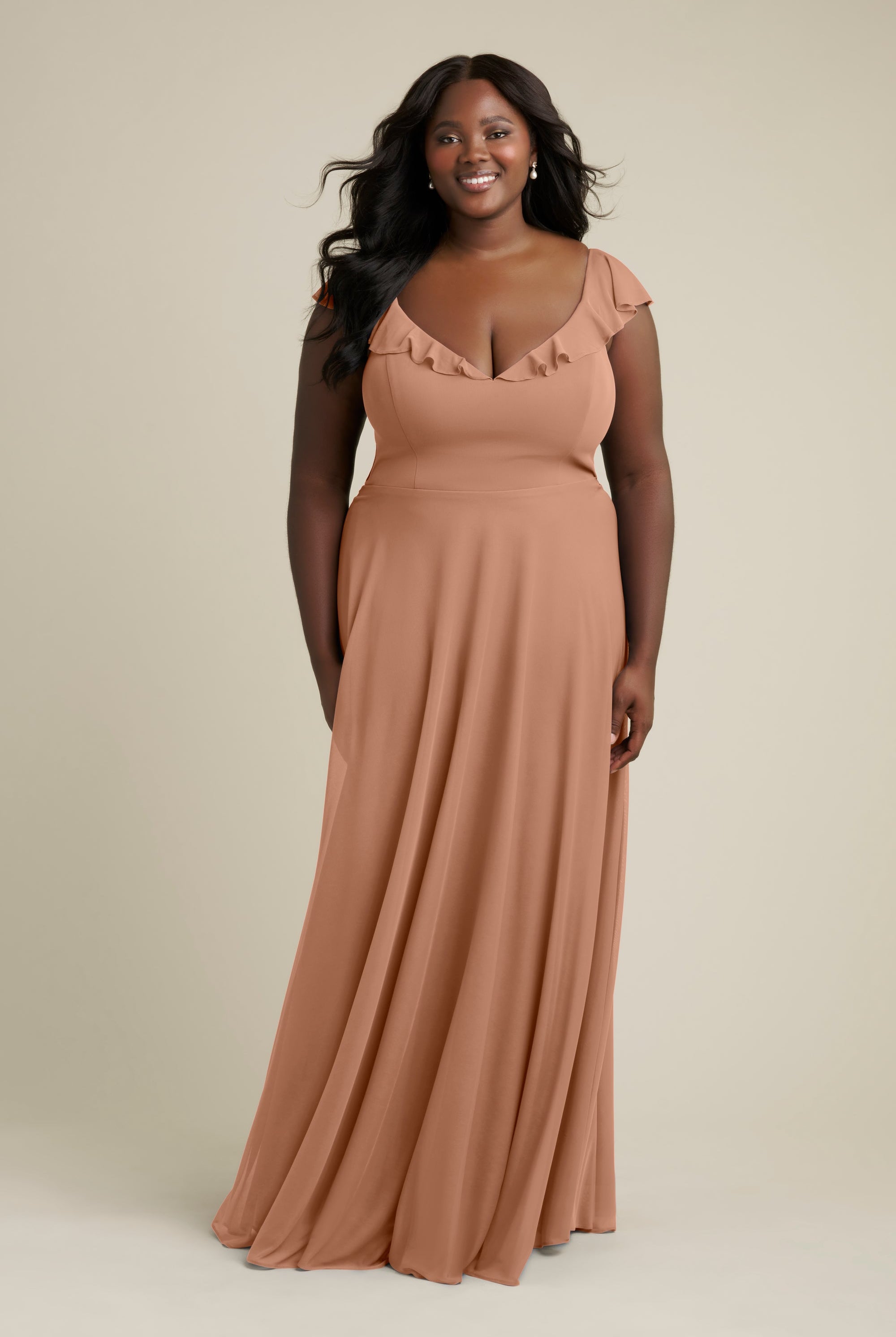 Chiffon bridesmaid gowns are synonymous with effortless beauty, as the flowy fabric allows it to drape beautifully. You can buy a gown that’s fitted in the bodice but free flowing in the waste to create a silhouette that’s lustrous yet classy. Thanks to its draped nature, a stretch chiffon dress enhances natural shapes and offers an ethereal look that’s perfect for all body types.