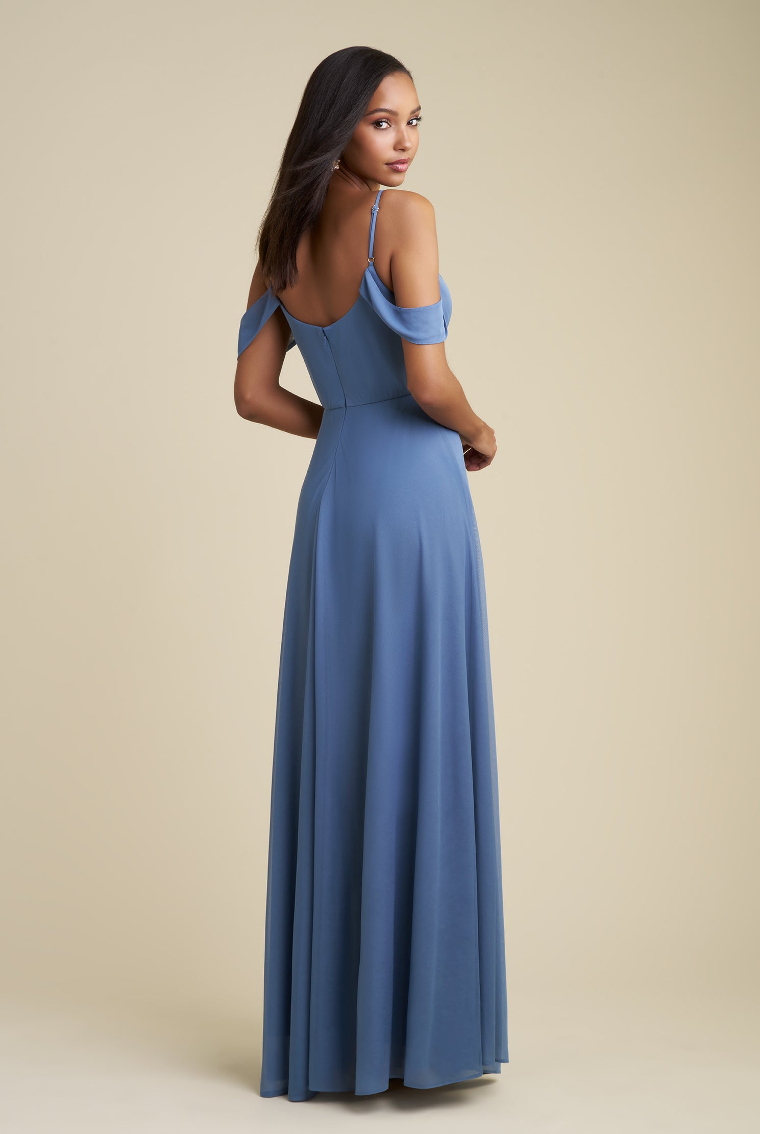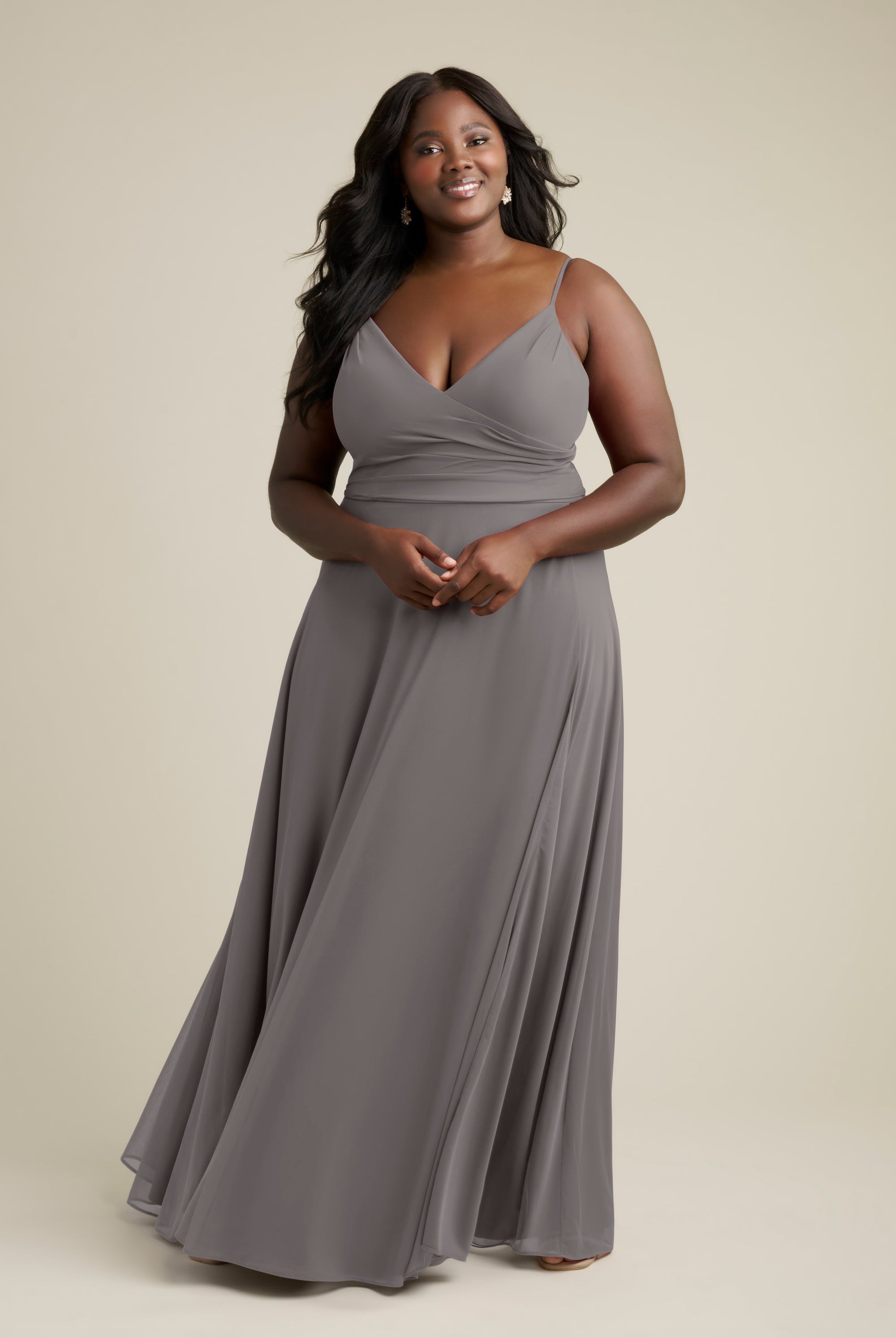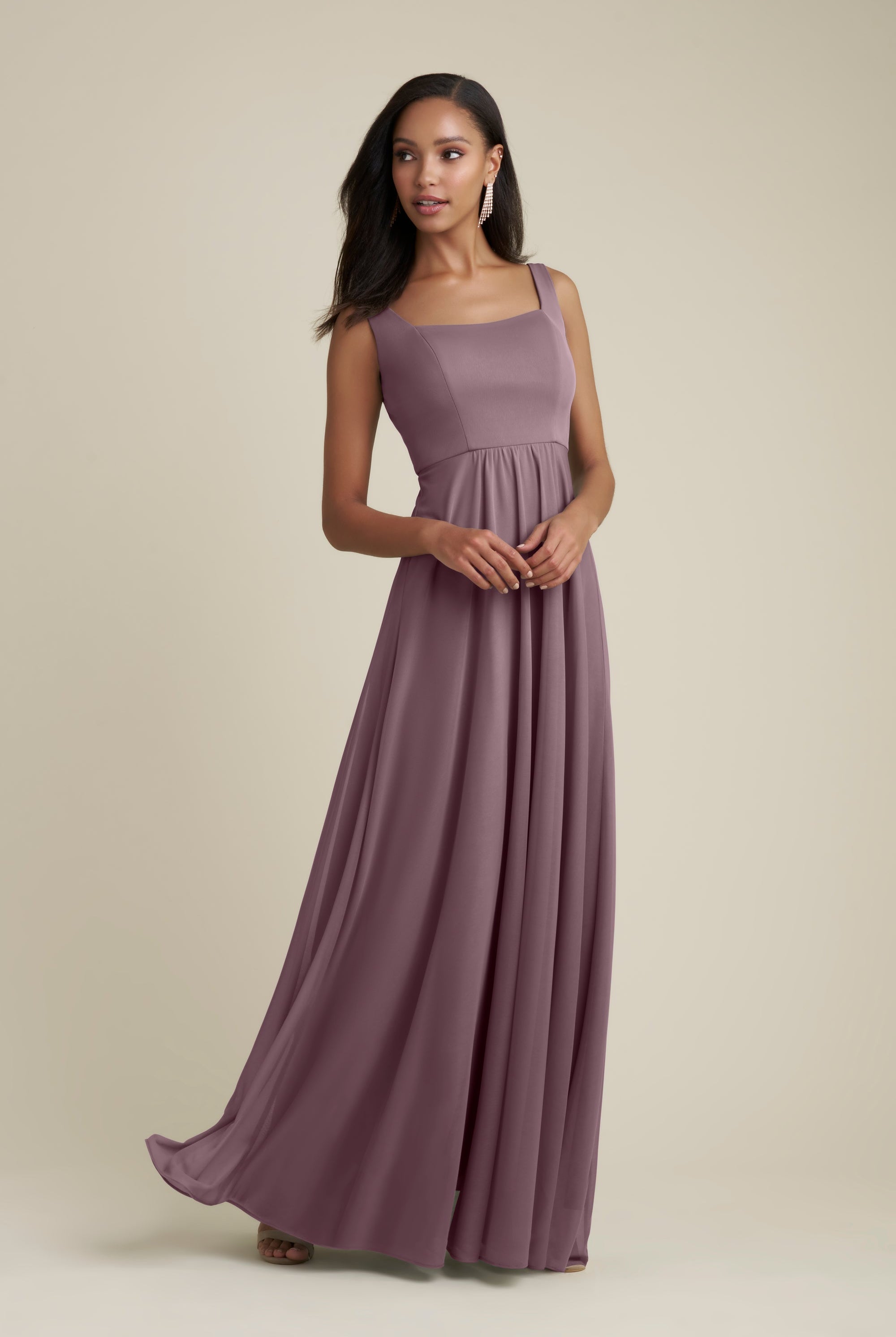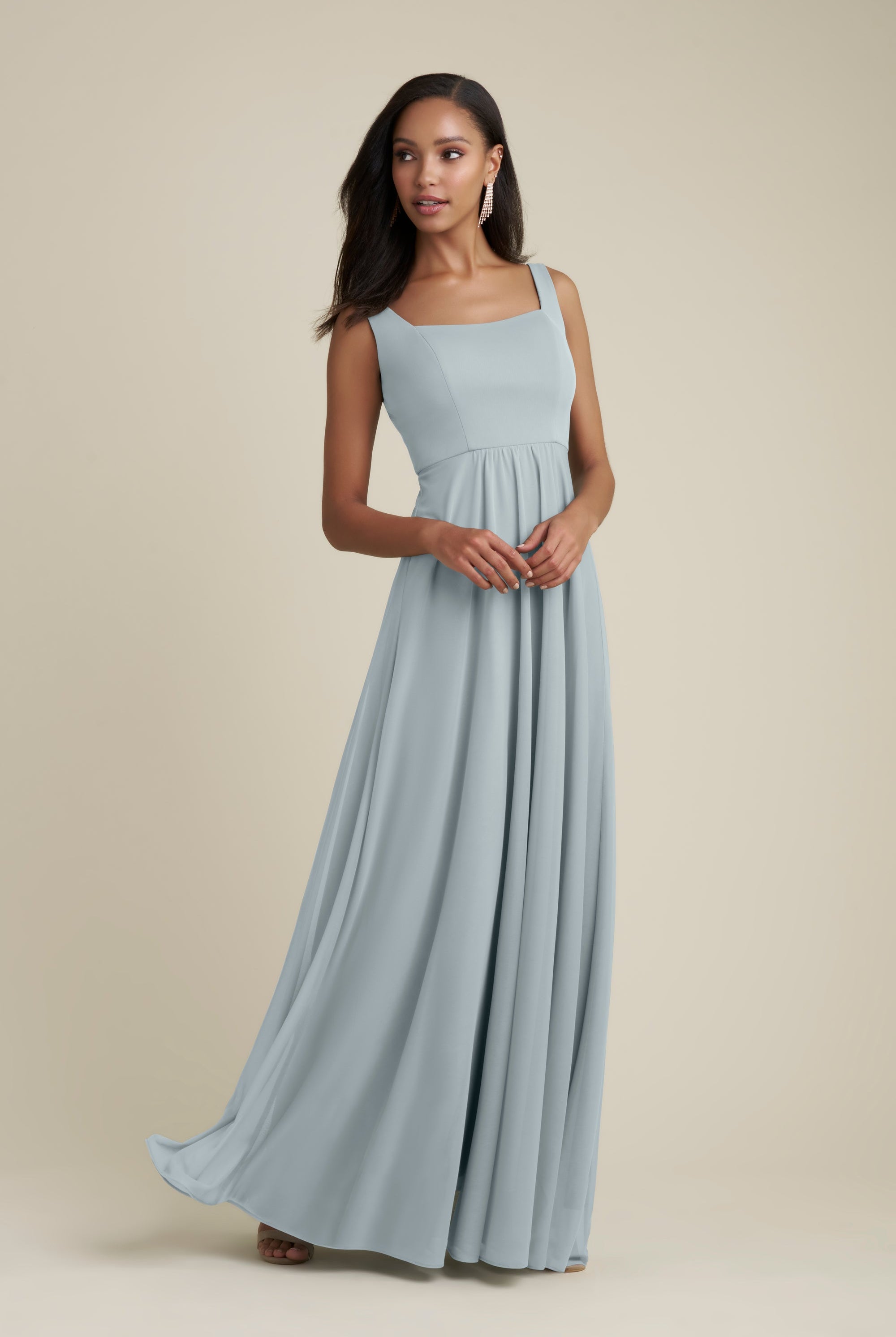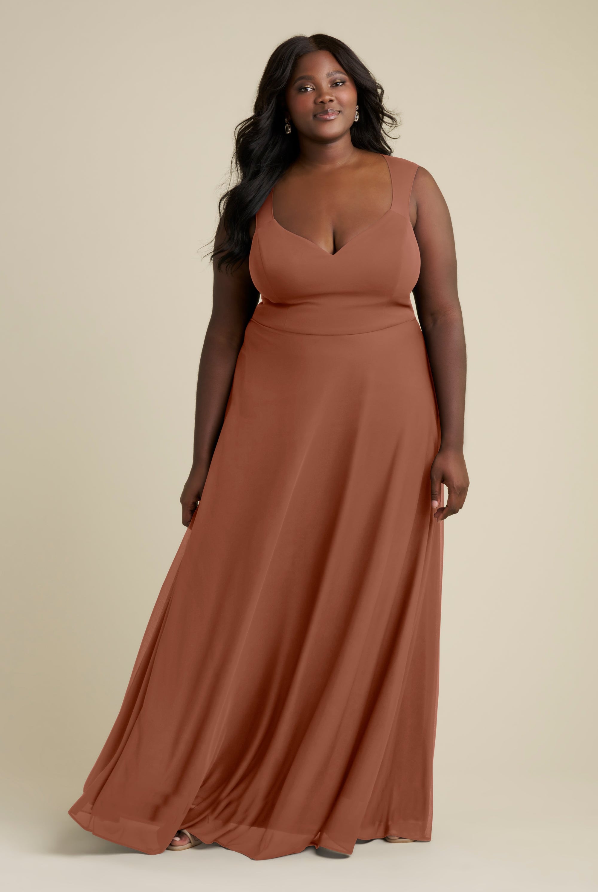 Chiffon bridesmaid gowns are synonymous with effortless beauty, as the flowy fabric allows it to drape beautifully. You can buy a gown that’s fitted in the bodice but free flowing in the waste to create a silhouette that’s lustrous yet classy. Thanks to its draped nature, a stretch chiffon dress enhances natural shapes and offers an ethereal look that’s perfect for all body types.