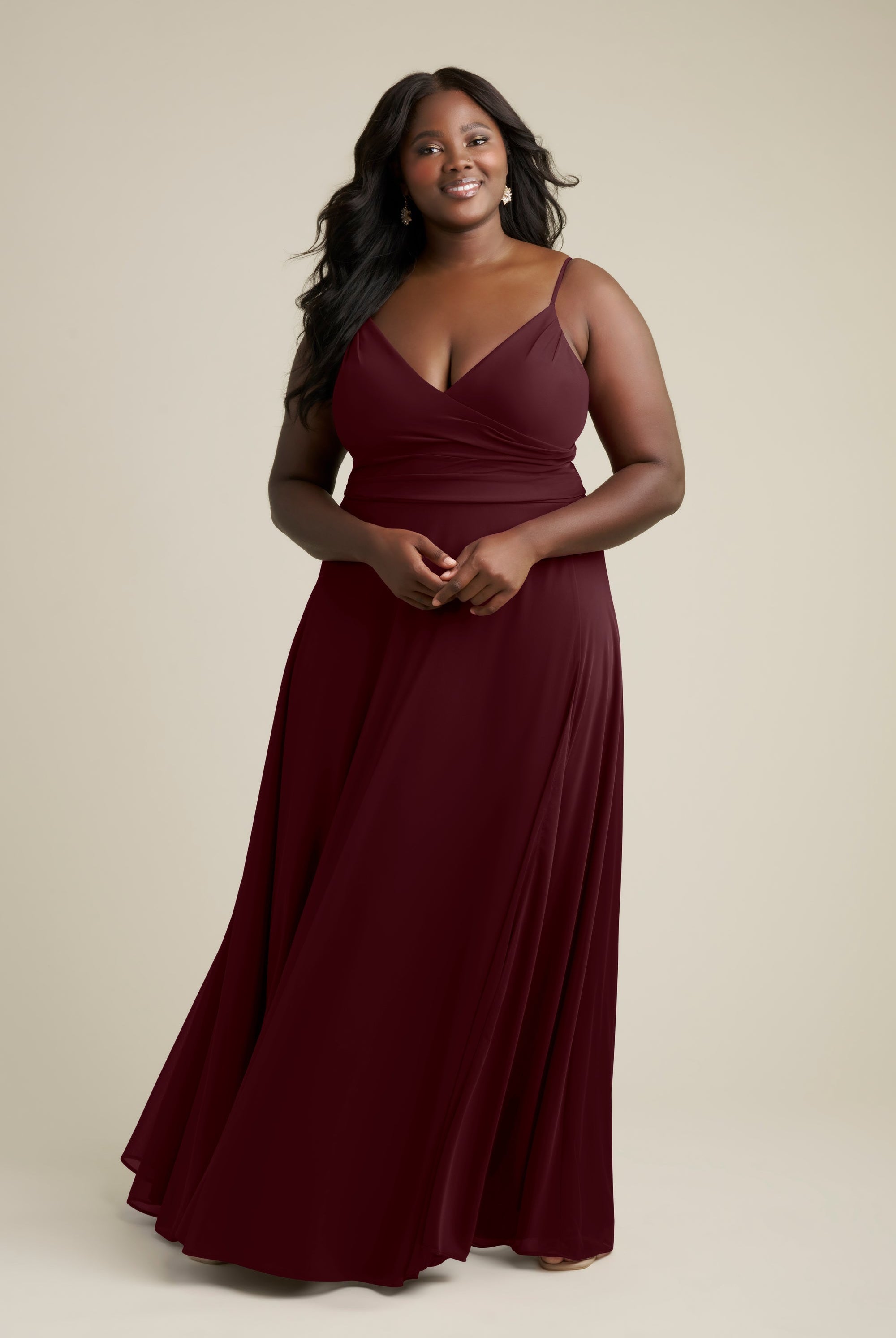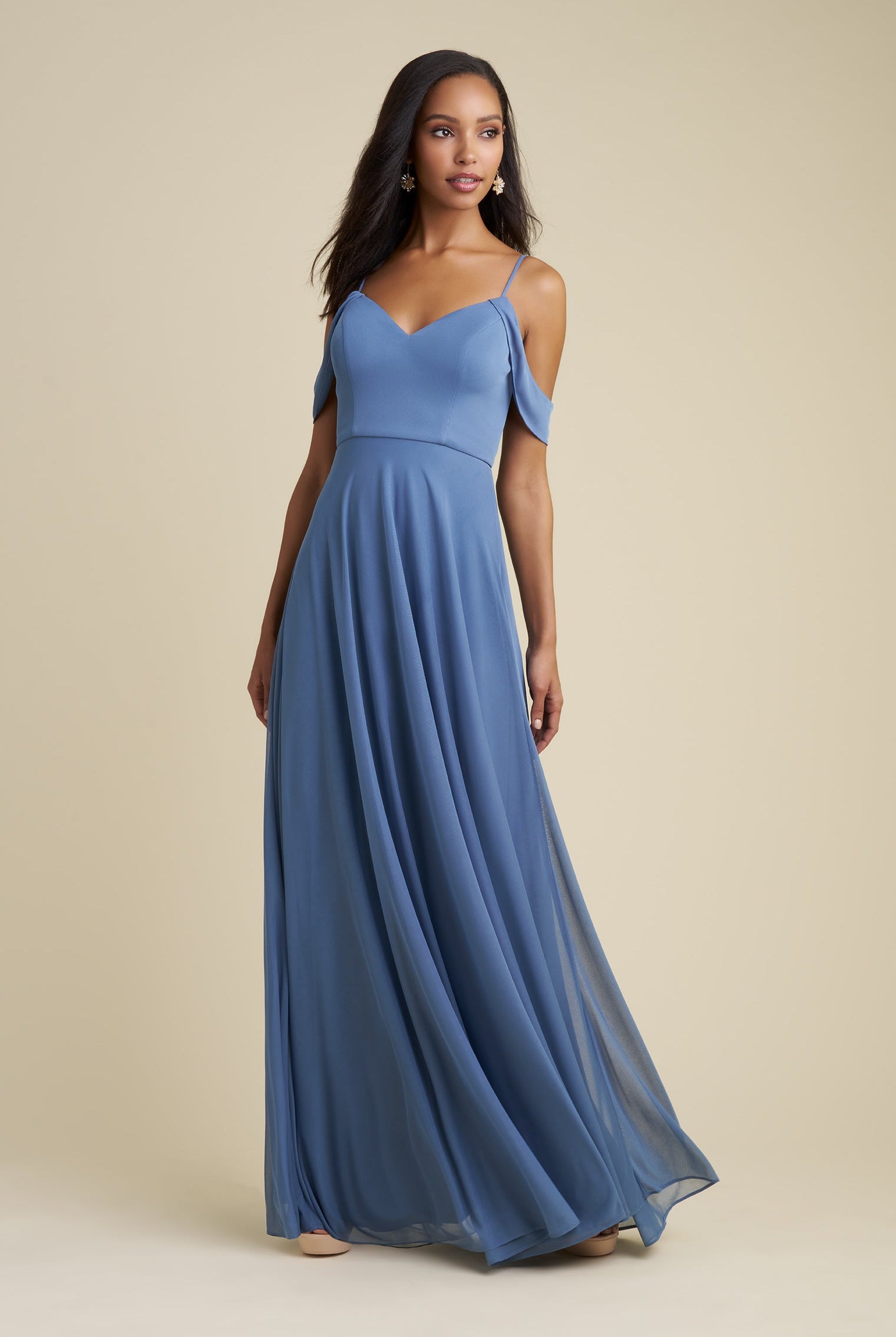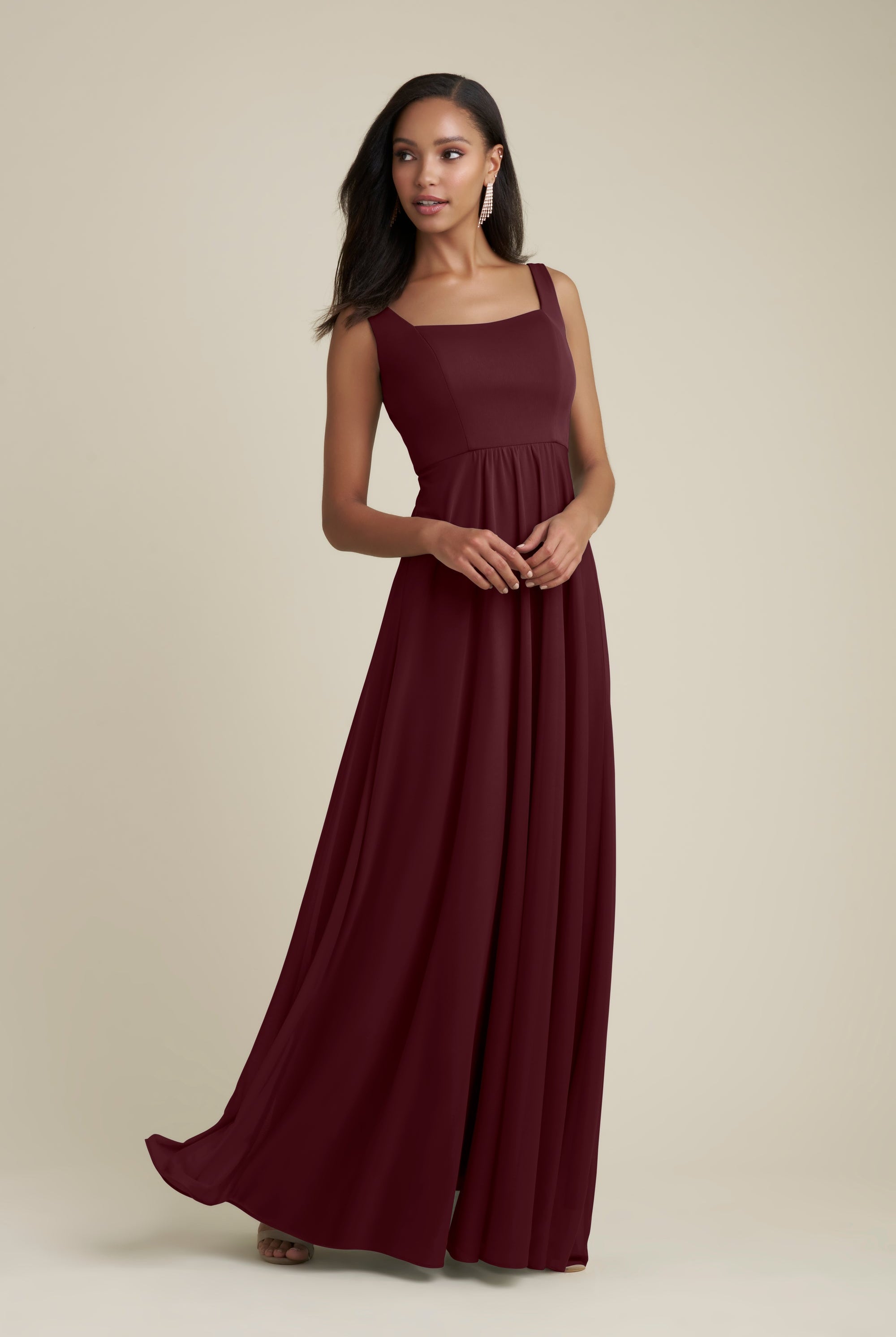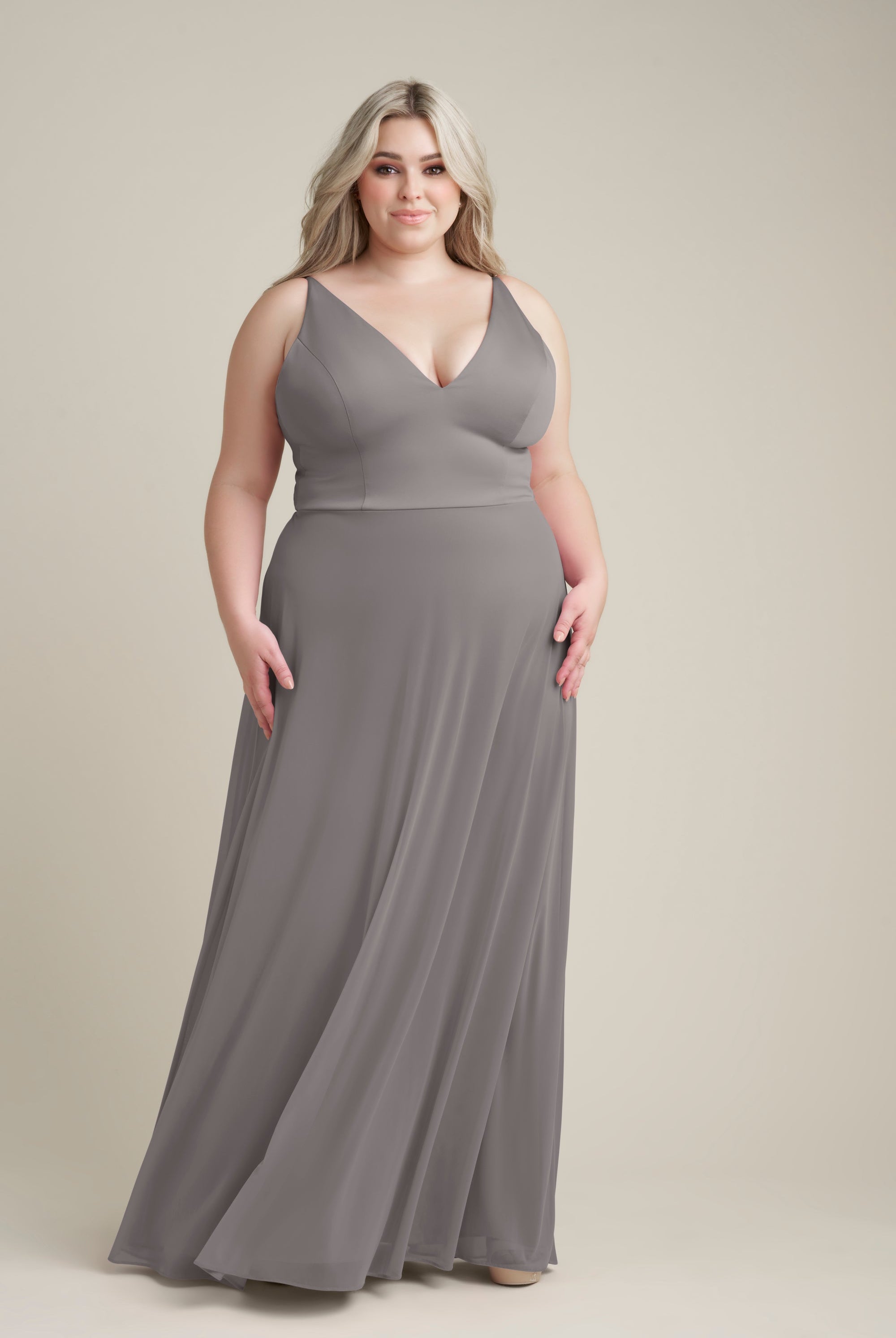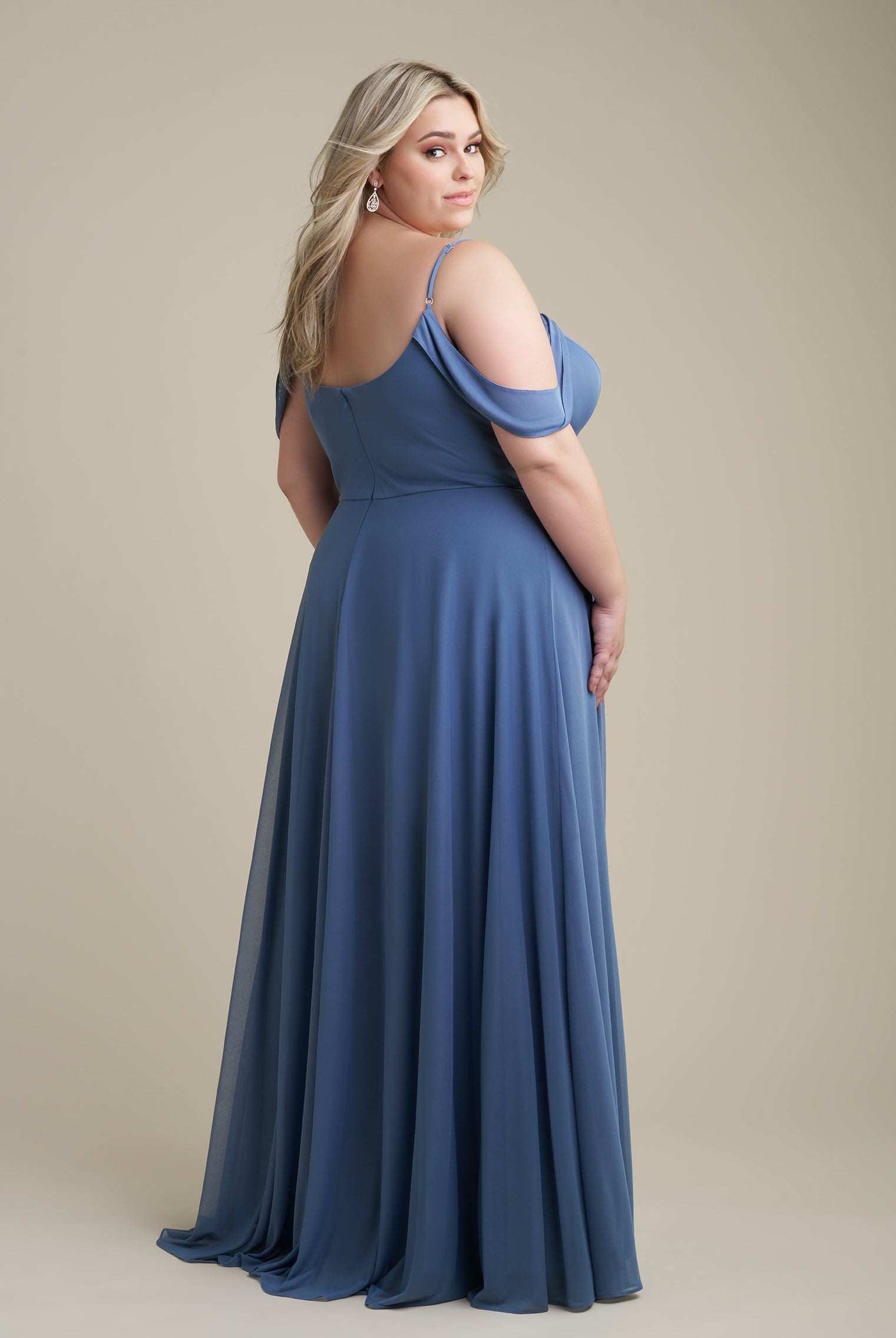 Chiffon bridesmaid gowns are synonymous with effortless beauty, as the flowy fabric allows it to drape beautifully. You can buy a gown that’s fitted in the bodice but free flowing in the waste to create a silhouette that’s lustrous yet classy. Thanks to its draped nature, a stretch chiffon dress enhances natural shapes and offers an ethereal look that’s perfect for all body types.