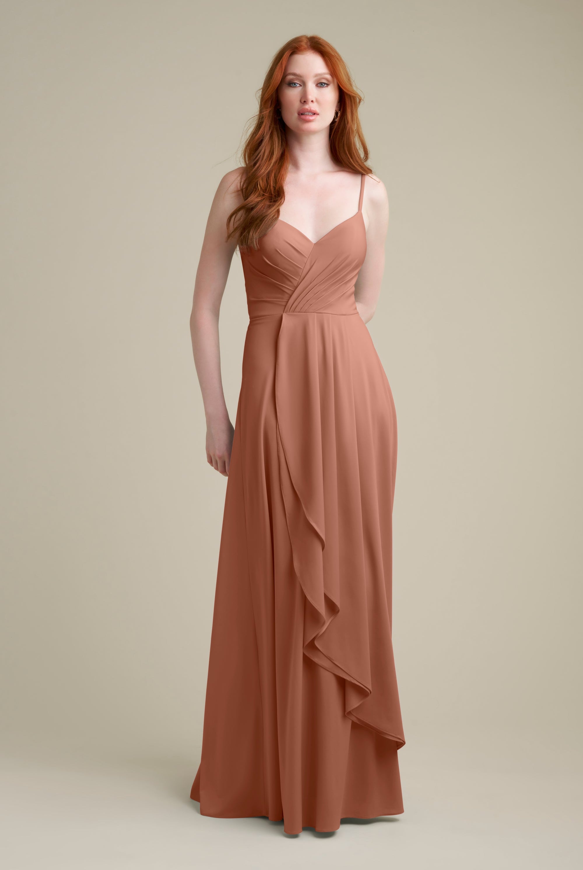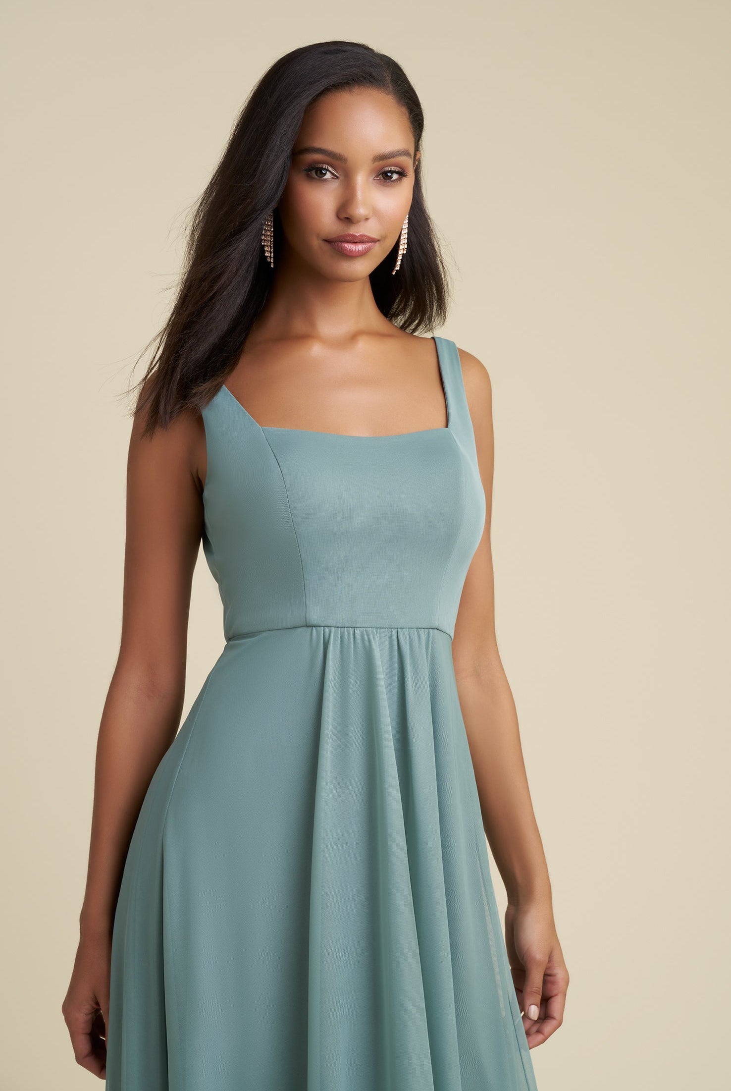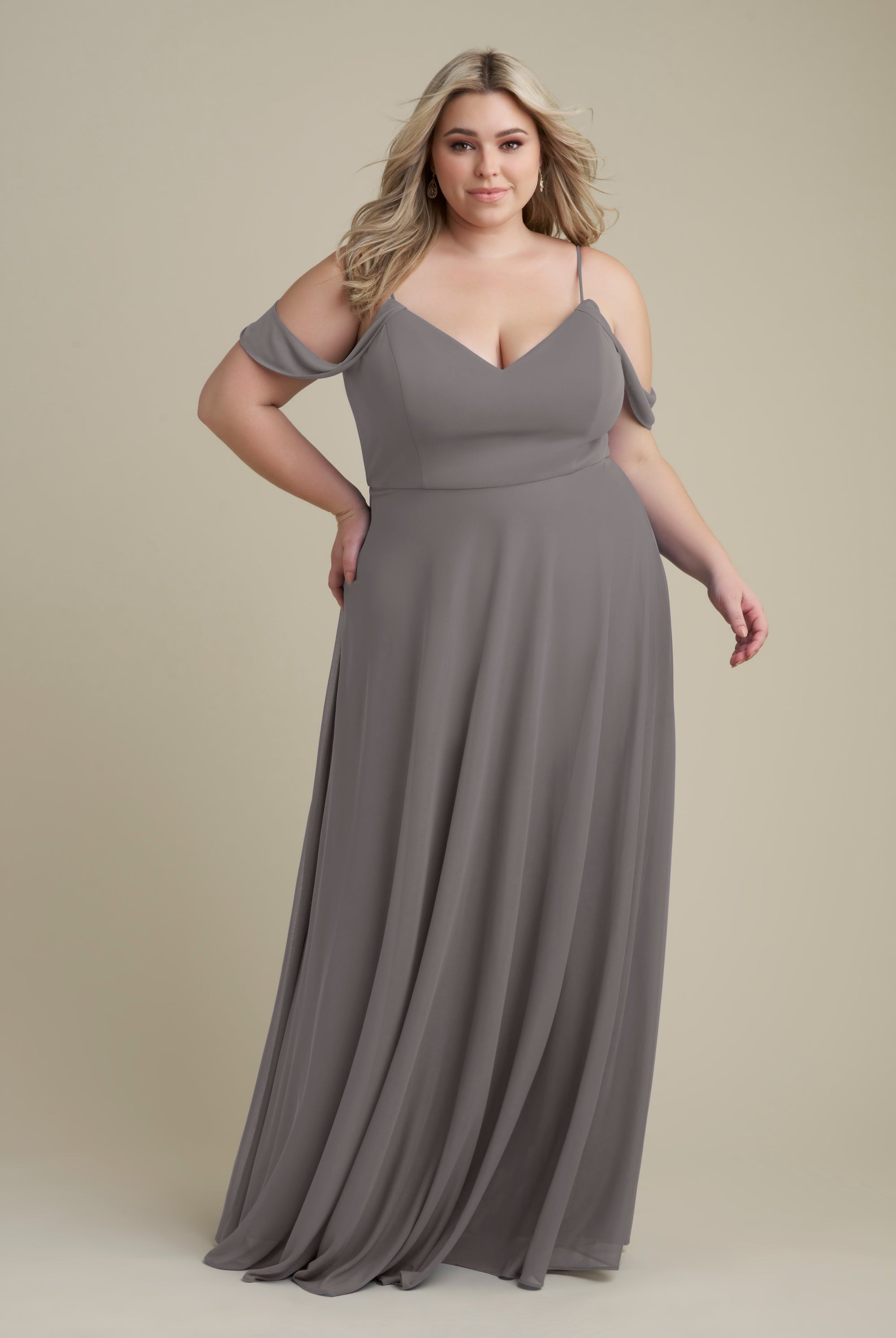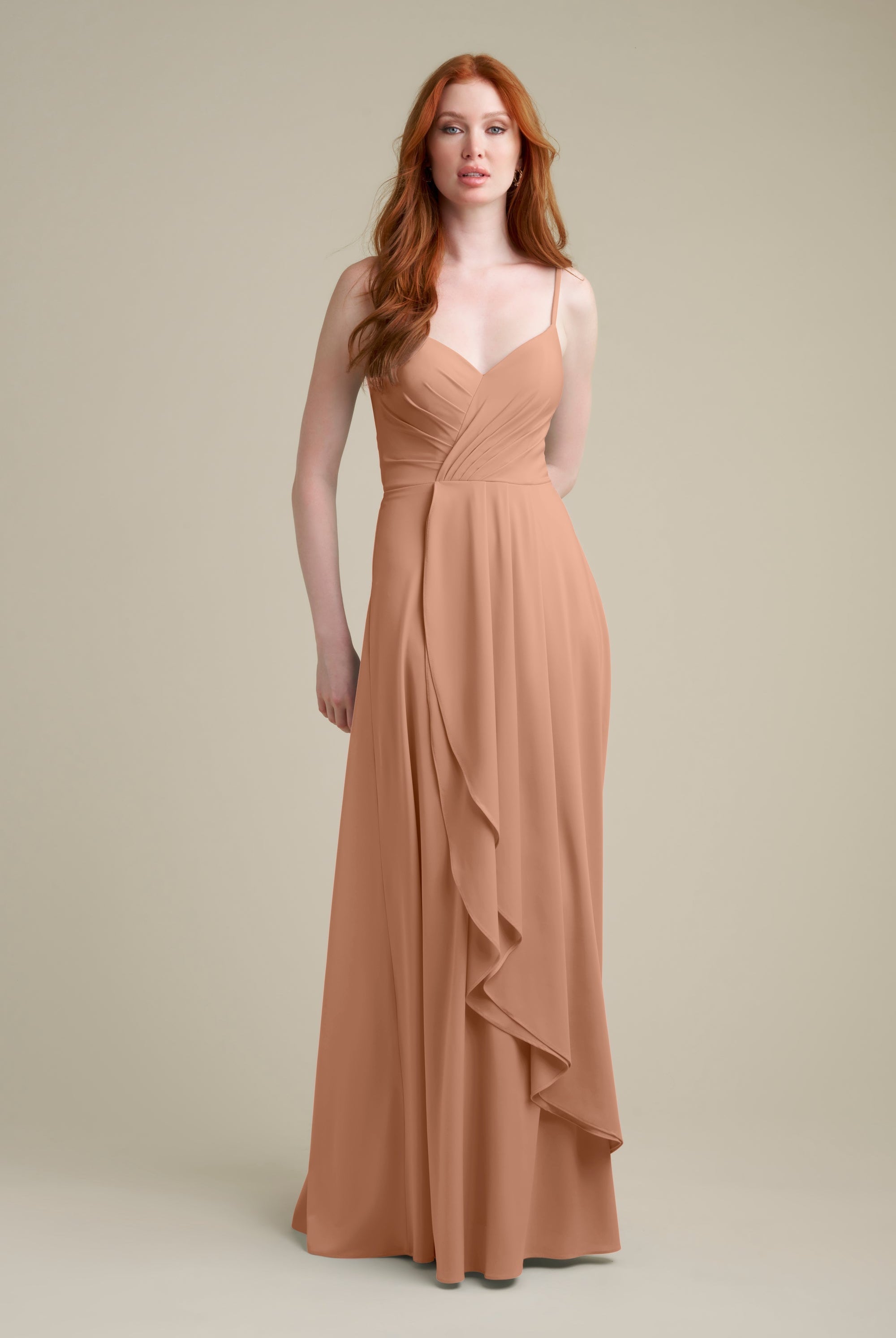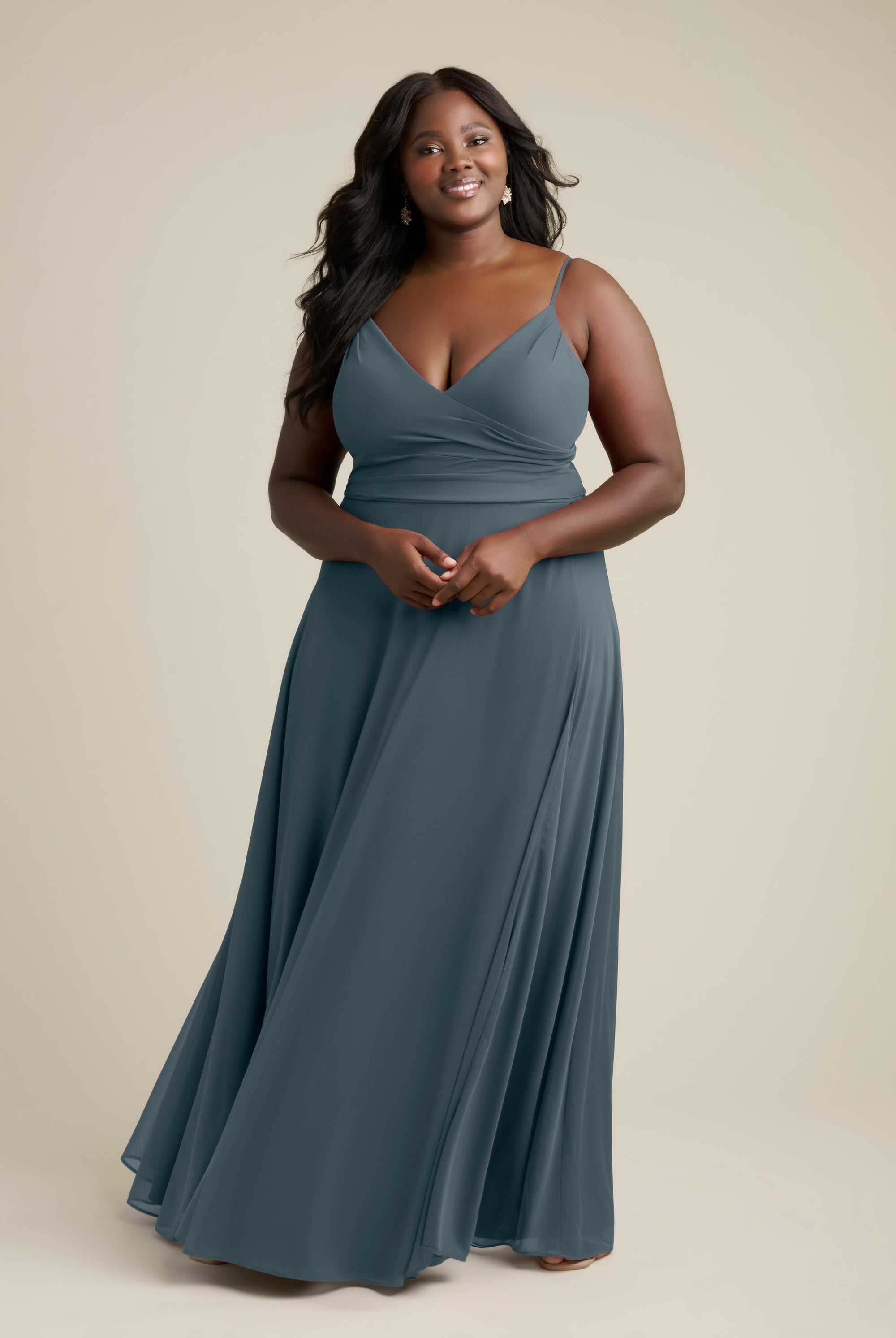 Chiffon bridesmaid gowns are synonymous with effortless beauty, as the flowy fabric allows it to drape beautifully. You can buy a gown that’s fitted in the bodice but free flowing in the waste to create a silhouette that’s lustrous yet classy. Thanks to its draped nature, a stretch chiffon dress enhances natural shapes and offers an ethereal look that’s perfect for all body types.