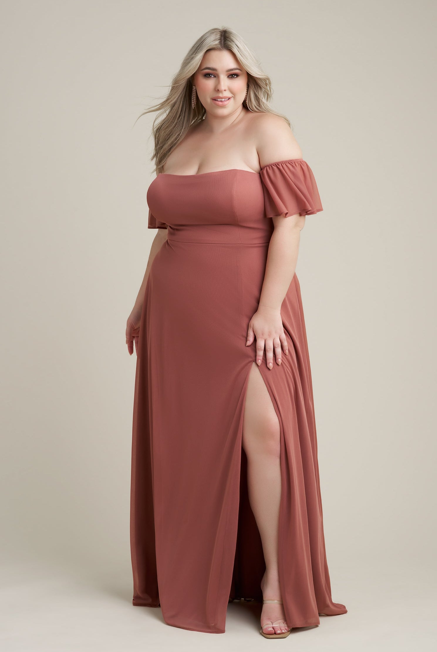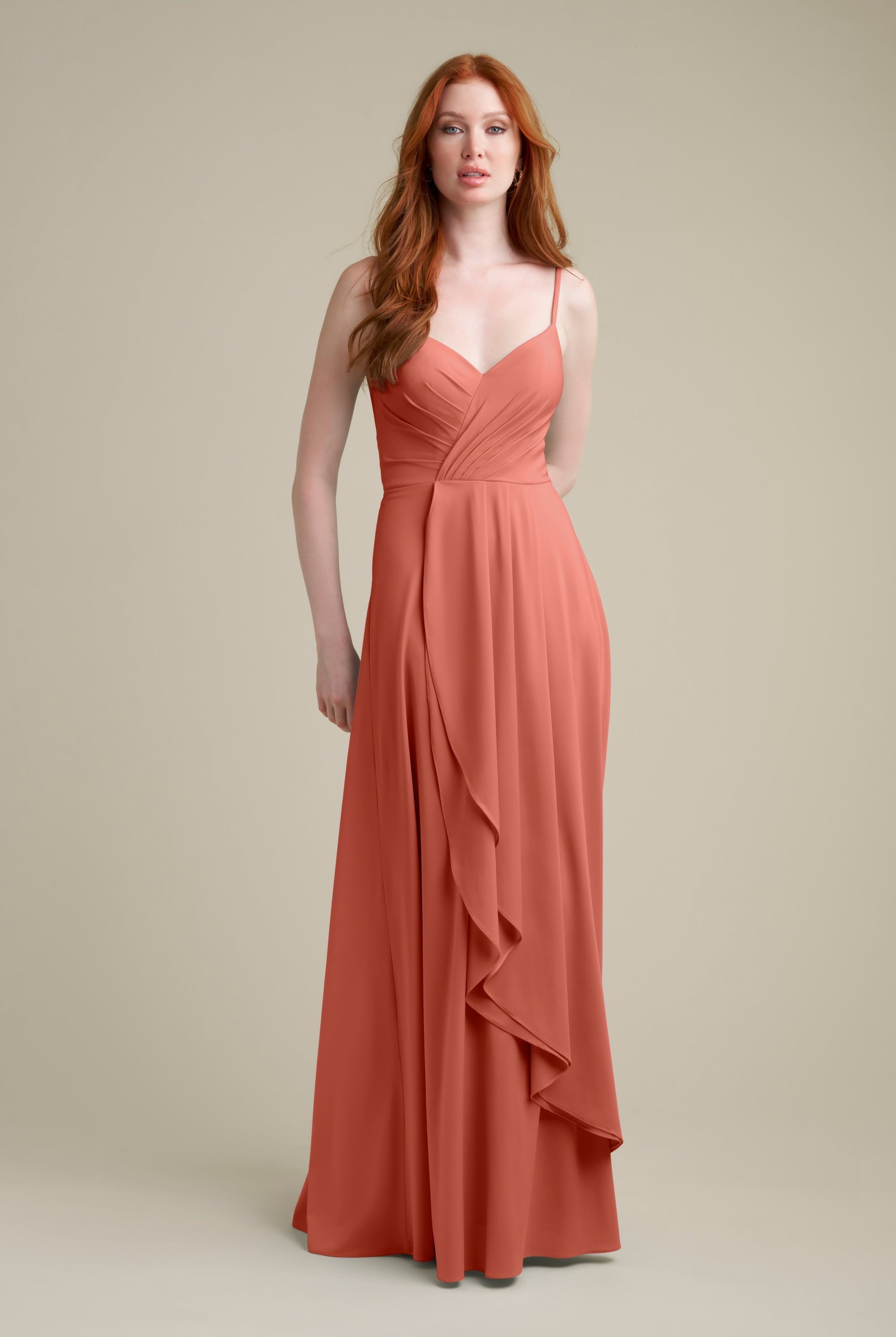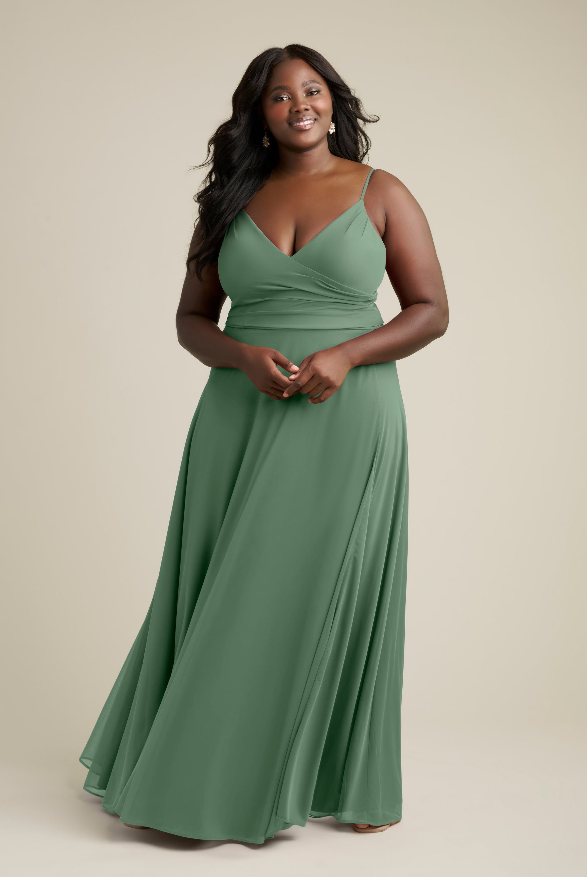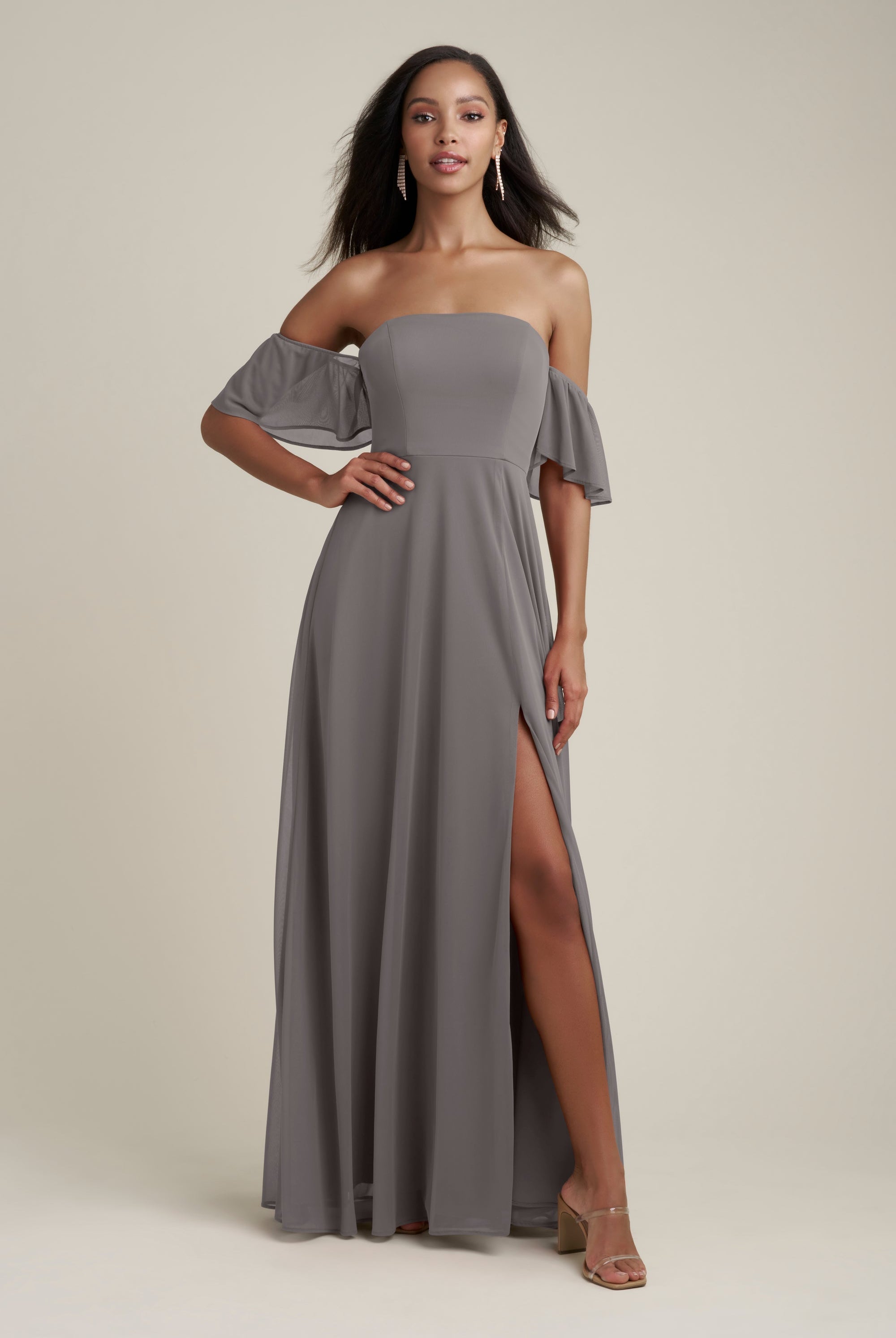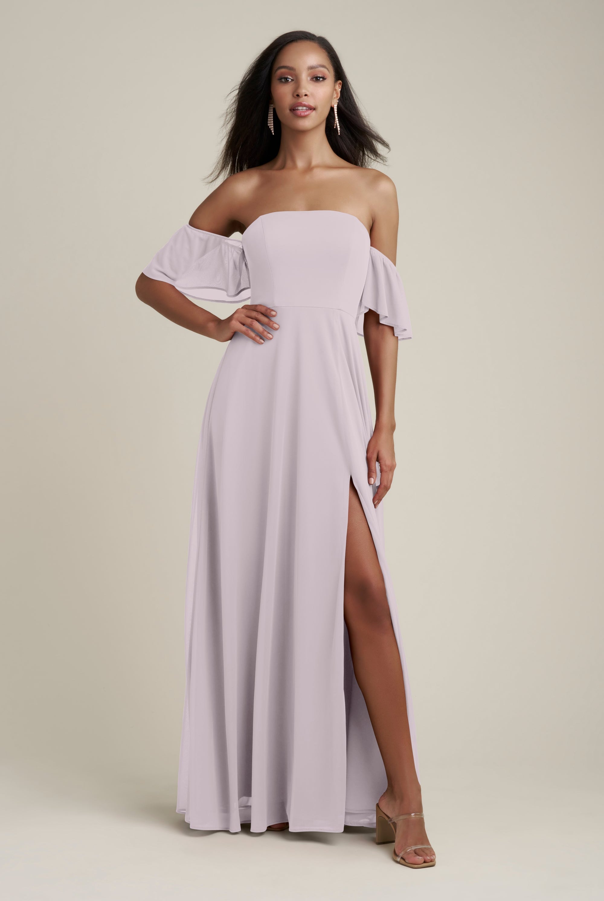 Chiffon bridesmaid gowns are synonymous with effortless beauty, as the flowy fabric allows it to drape beautifully. You can buy a gown that’s fitted in the bodice but free flowing in the waste to create a silhouette that’s lustrous yet classy. Thanks to its draped nature, a stretch chiffon dress enhances natural shapes and offers an ethereal look that’s perfect for all body types.