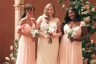 Colors can vary from screen to screen. For the most accurate match, we always recommend ordering a swatch before you choose your bridesmaids’ dresses.