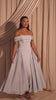 The Callie Dress is crafted from stretch satin and features an off-shoulder neckline with a folded band detail and a fitted bodice that accentuates the waist. The full A-line midi skirt falls beautifully with soft pleating for volume and movement, making it a timeless and elegant choice for bridesmaids.