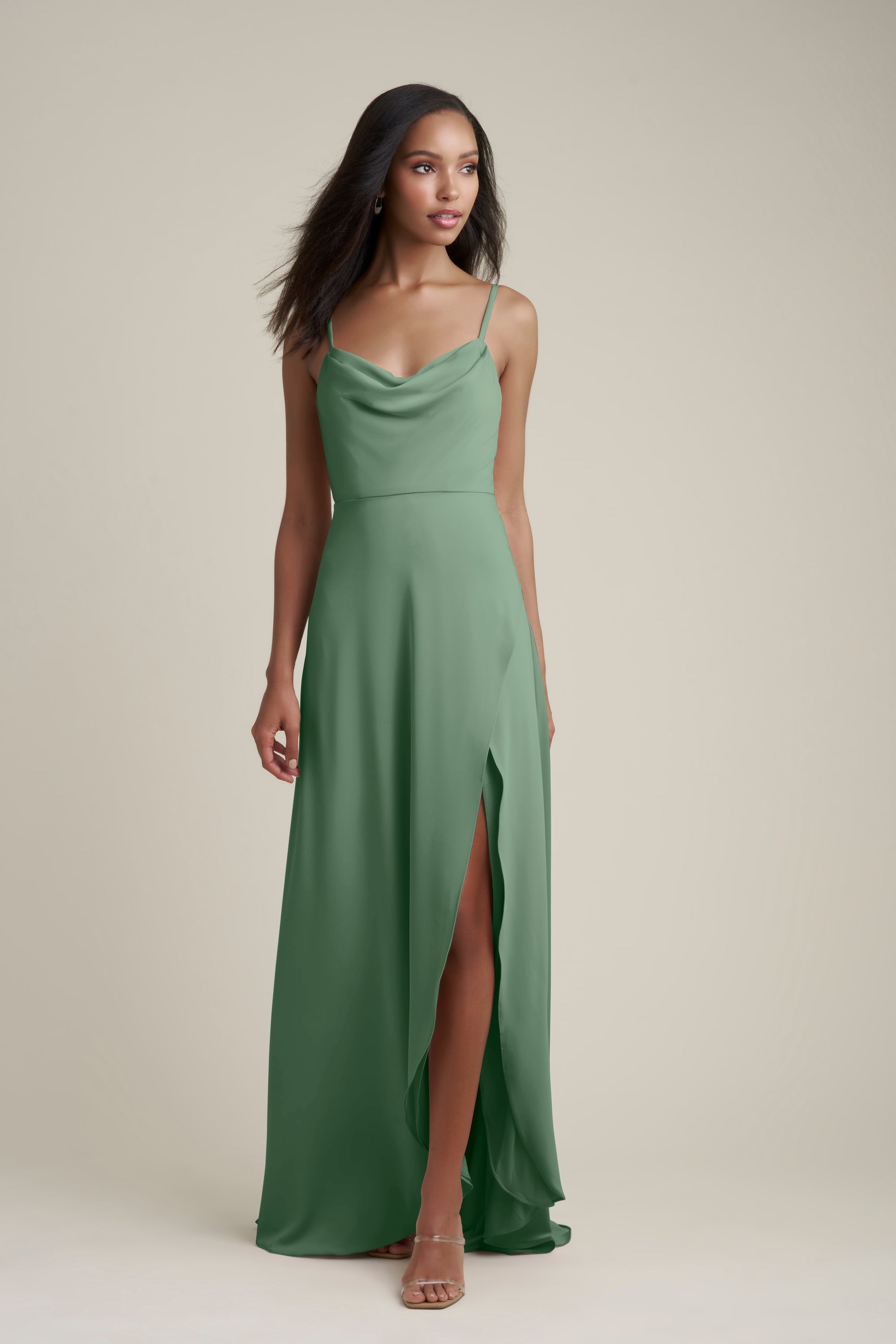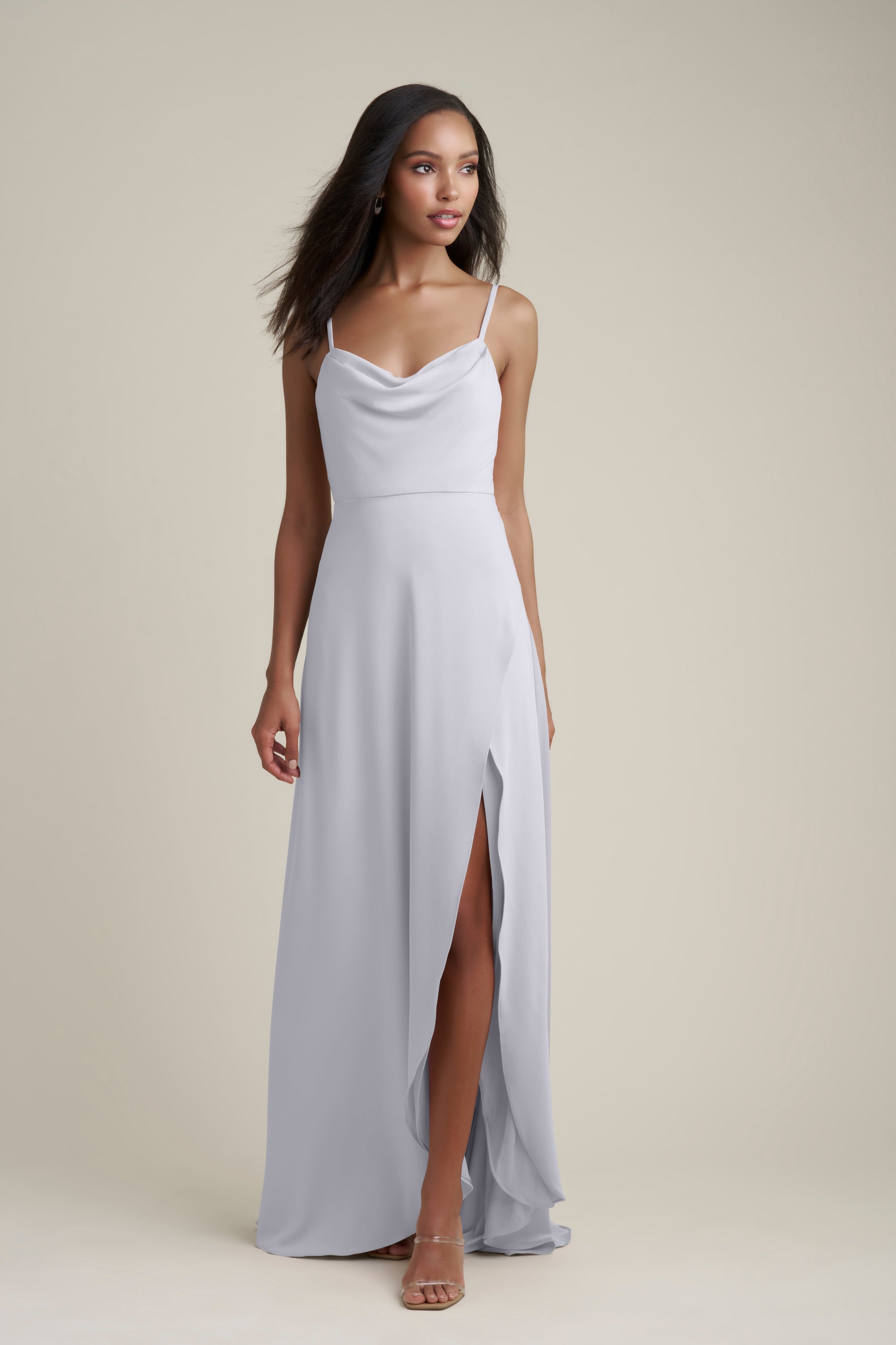 The minimalism of the 90s is back and better than ever with the Eliot gown; this chic, strappy look features a beautifully draped cowl neckline.