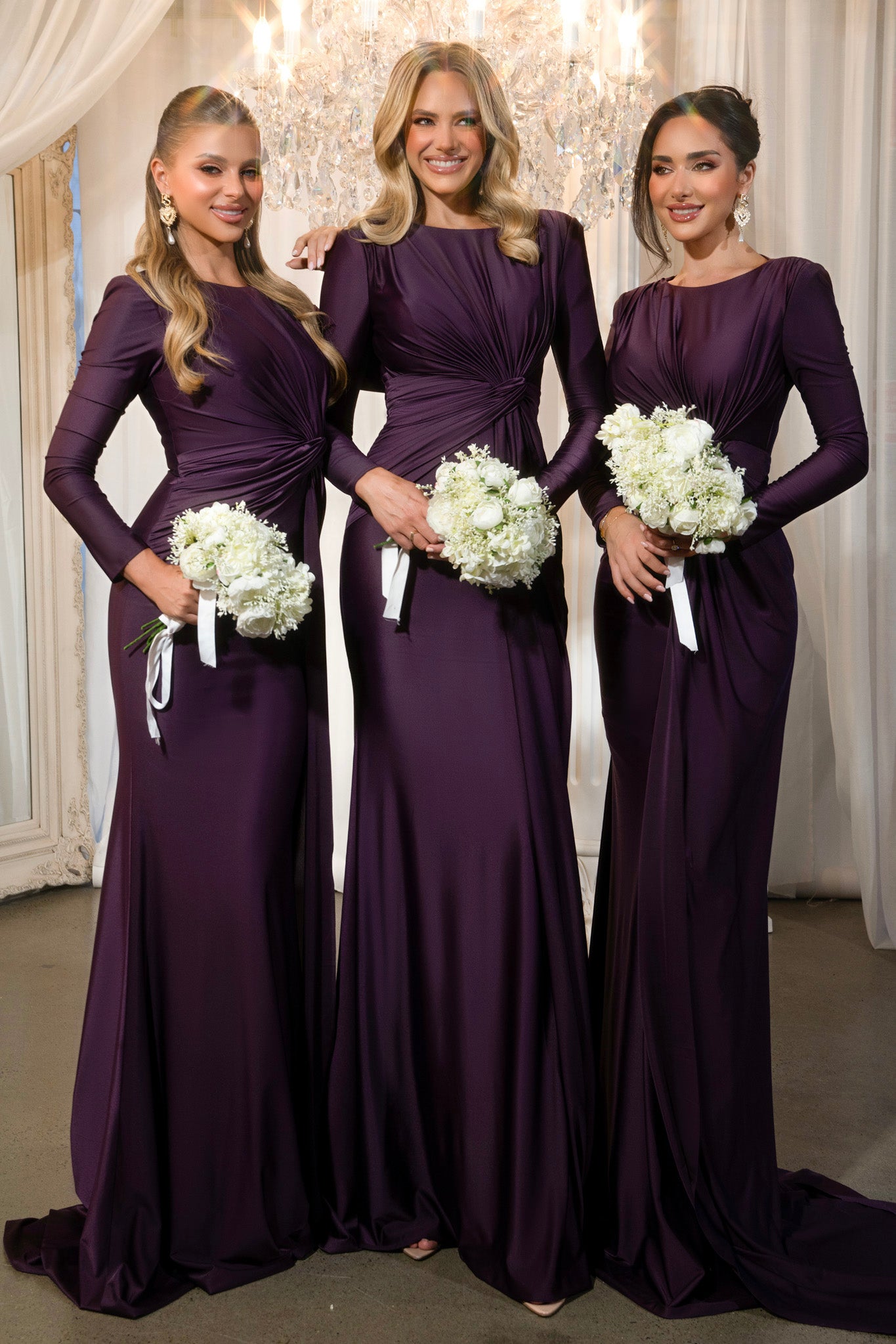 Introducing the Marion - this high-neck, long-sleeve design features a stunning rouged knot detail that gracefully drapes across the waist, accentuating the figure, and flows seamlessly up the bodice and down one side of the form-fitting skirt. Crafted from soft jersey fabric with medium to high stretch, the Marion offers a flattering silhouette while ensuring comfort and ease.