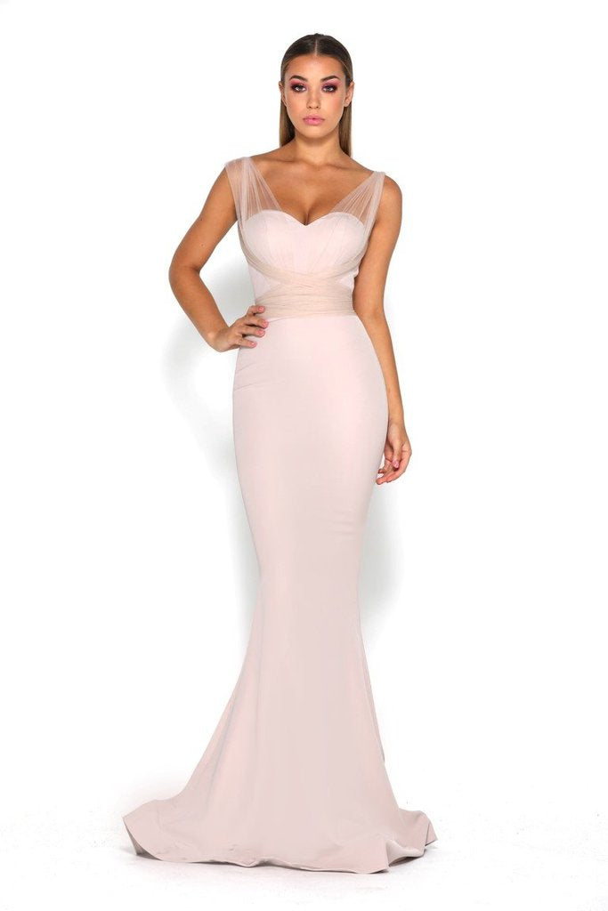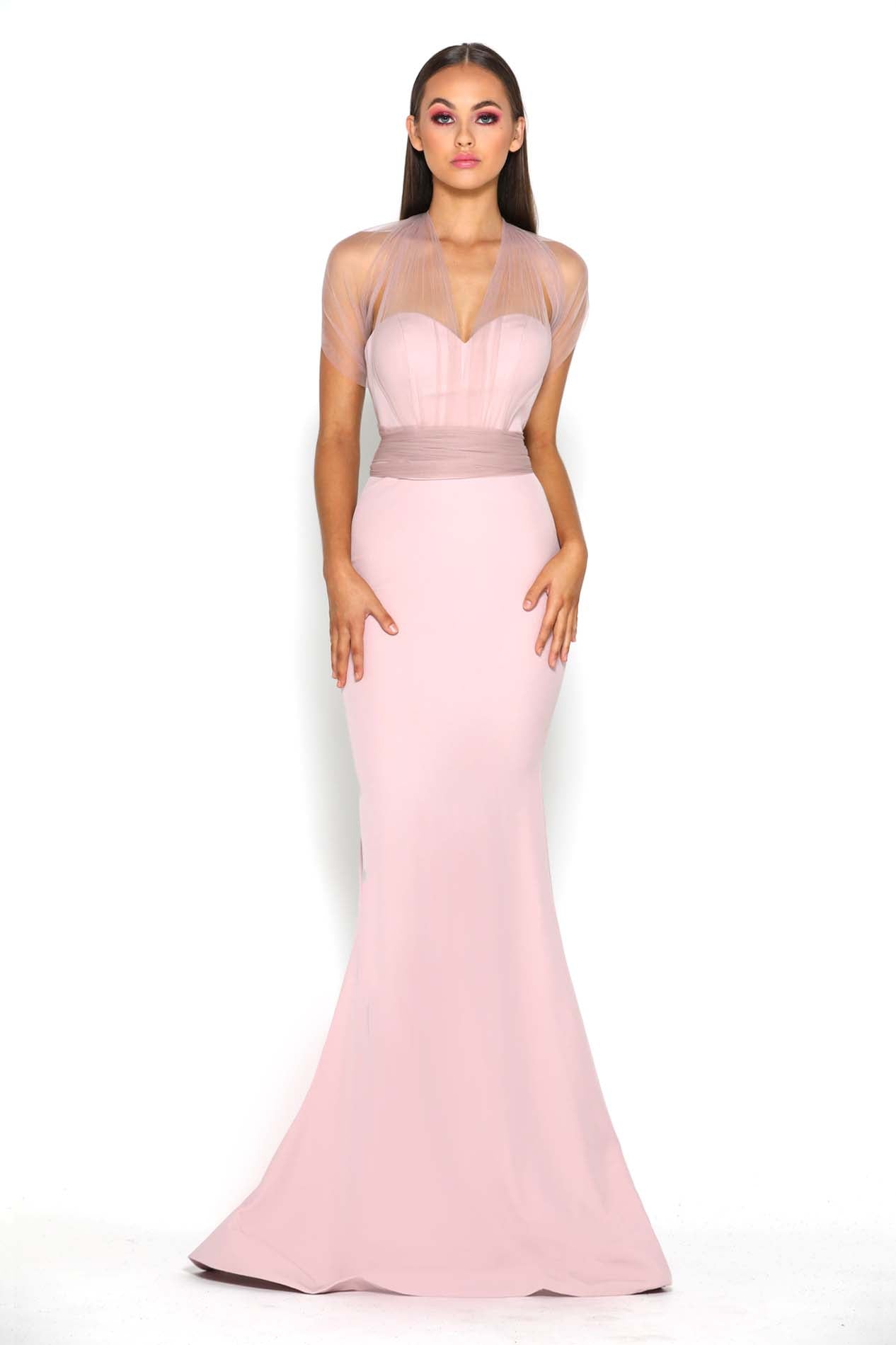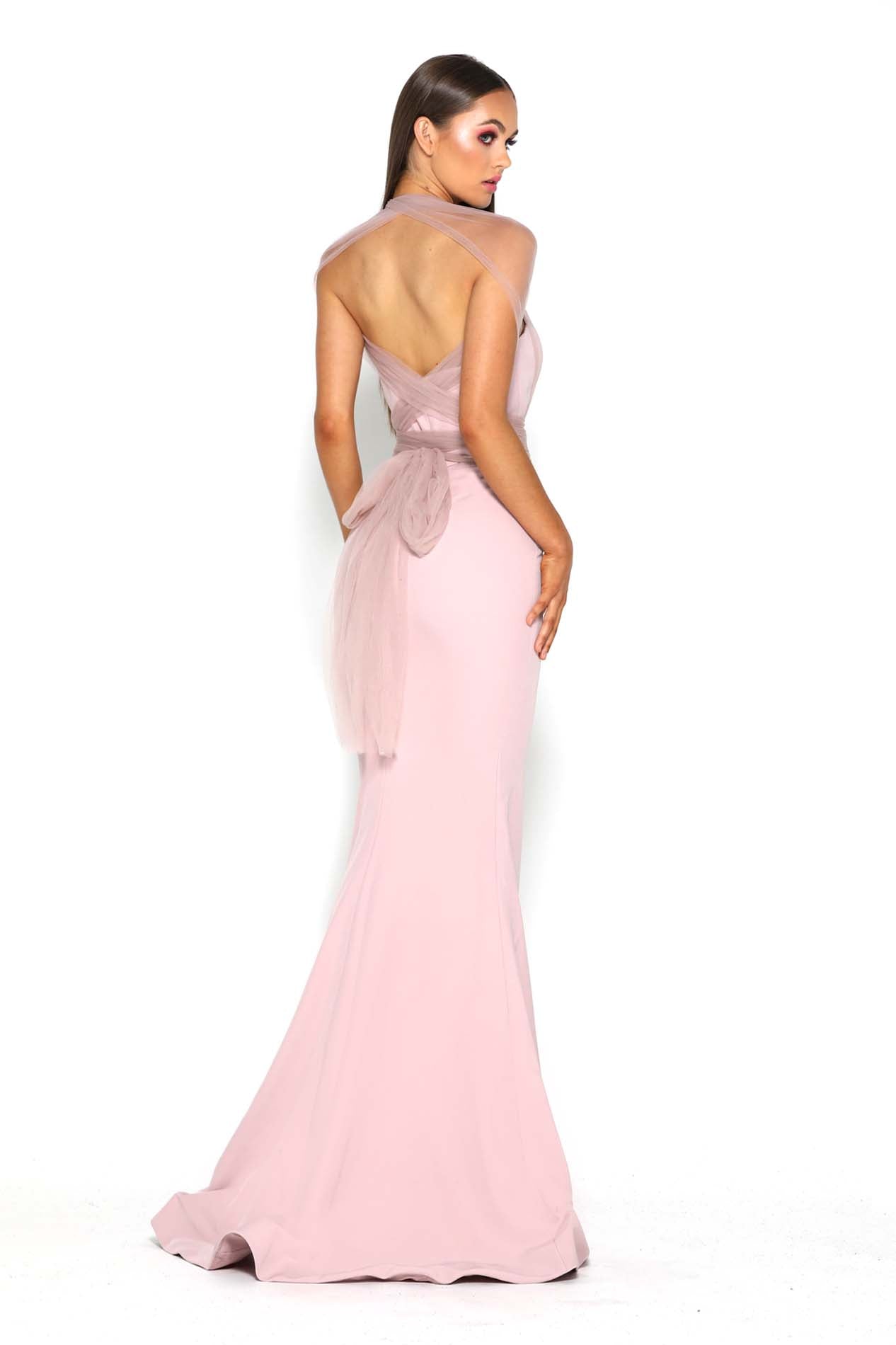 Introducing the Melisandre Gown – an enchanting, versatile masterpiece designed for the modern bridesmaid. This strapless gown features a fitted bodice with boning for a secure and flattering fit, beautifully accentuated by a classic sweetheart neckline and a slimline belt that defines the waist. What sets the Melisandre Gown apart are the two long, luxurious tulle pieces attached to the bodice, allowing you to wrap and style them in countless ways for a fresh, personalized look every time. With its timeless elegance and endless versatility, the Melisandre Gown ensures you'll feel stunning and unique at every celebration. A strapless gown is a classic choice for any formal event. The Melisandre Gown takes this traditional style to the next level with its exquisite design and endless possibilities for customization. This dress is perfect for any bride who wants her bridesmaids to have a subtly alluring look on the big day.