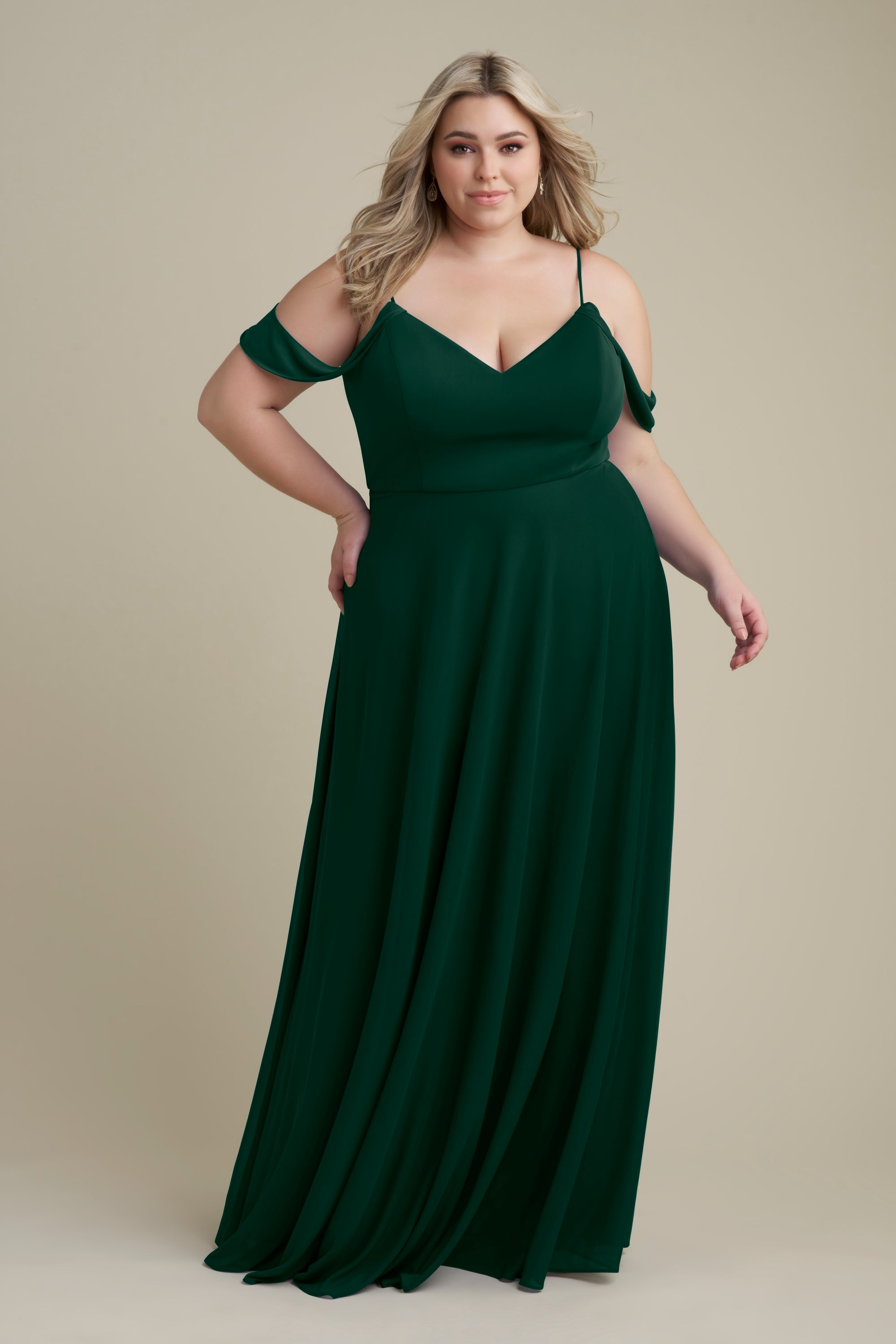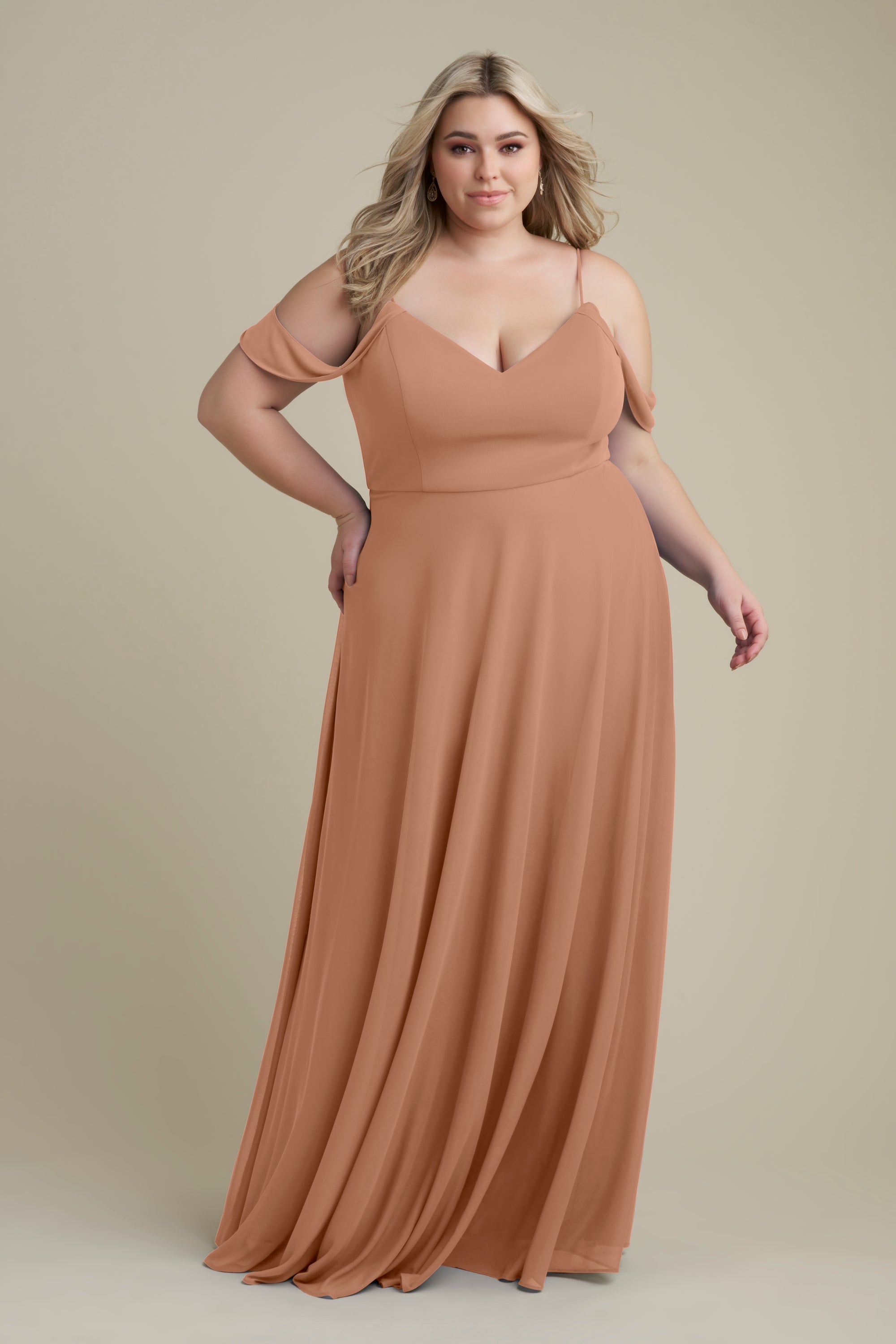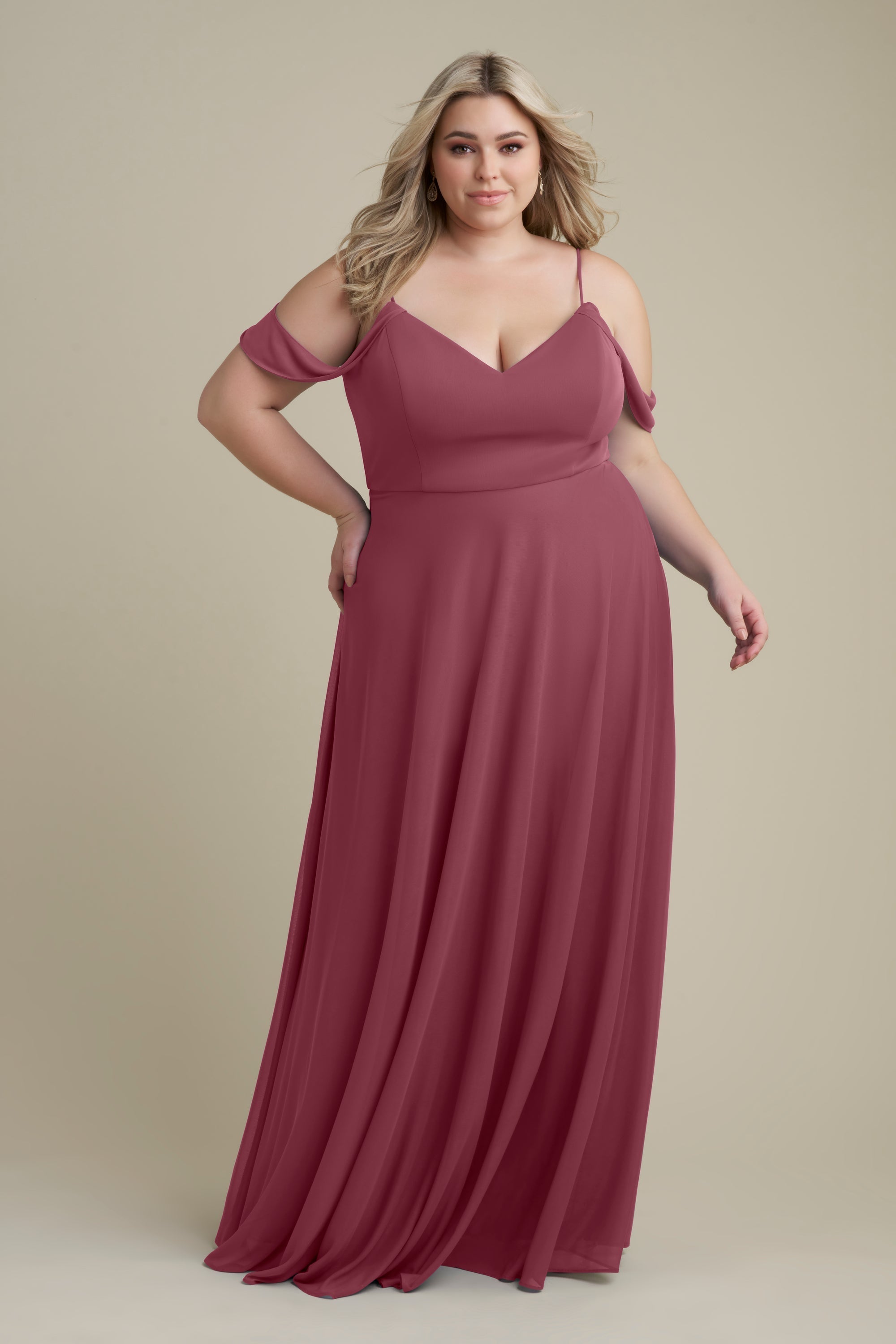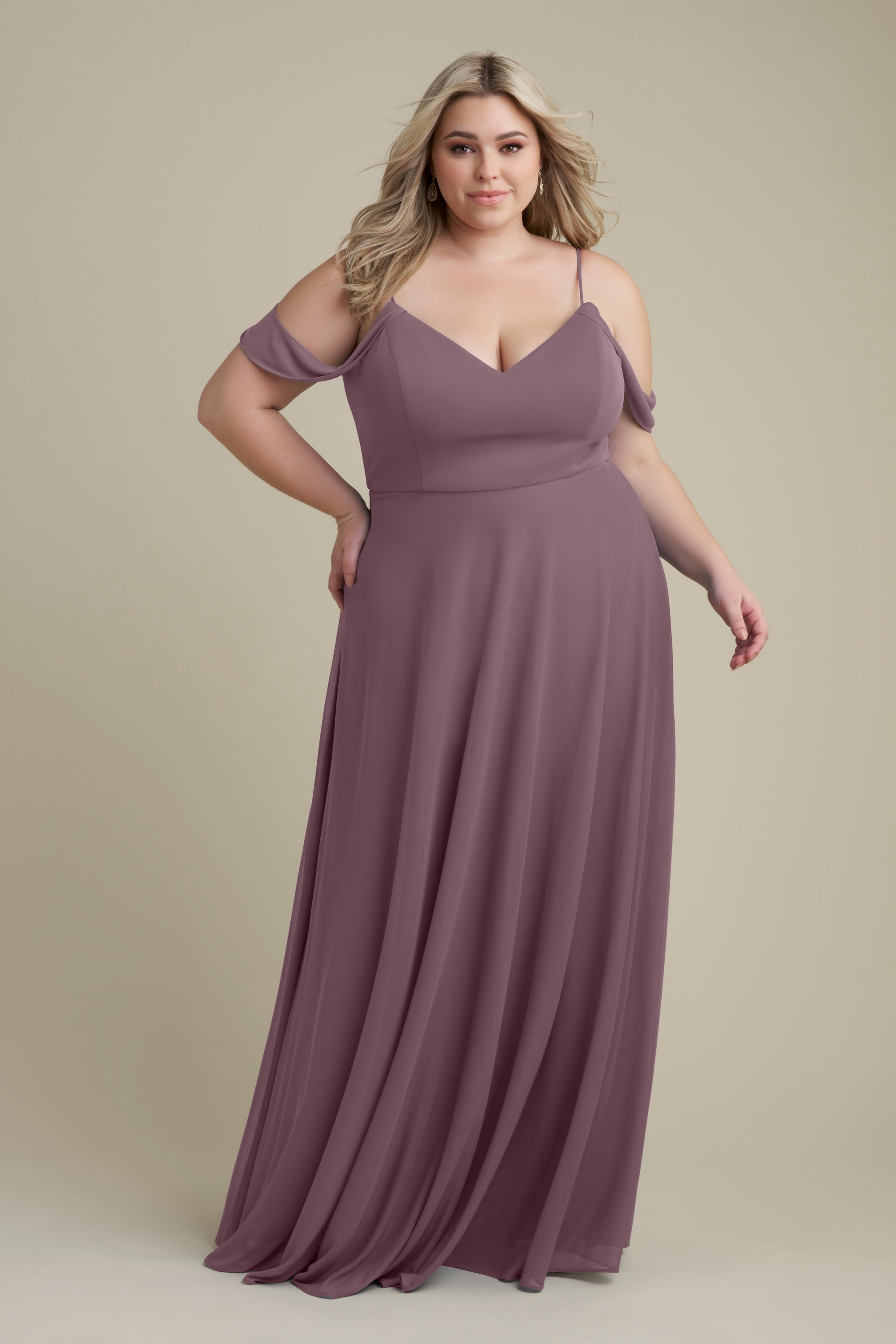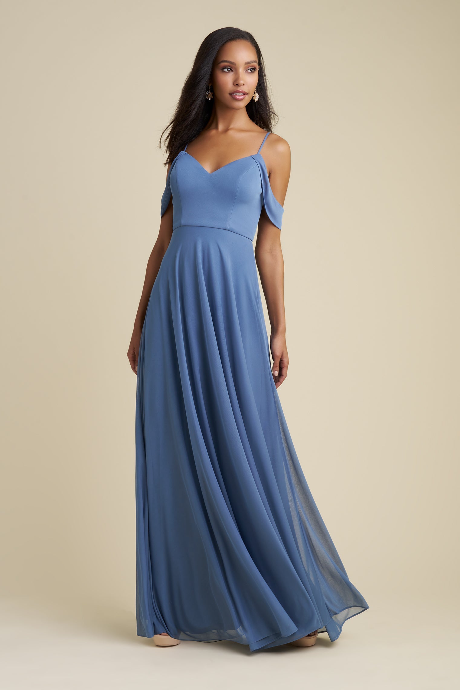 Meet Shelley: an ultra-romantic A-line gown with draped cold shoulder straps.