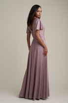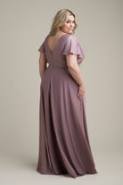 Fluttering sleeves, a faux wraparound bodice and petite bow at the waist lend a balletic grace to the lovely Sylvia gown.