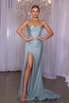 Introducing the stunning Viola, a strapless fitted masterpiece designed to turn heads and make your bridesmaids feel fabulous. Featuring exquisite ruching across the bodice and hips, this gown beautifully enhances every silhouette while adding a touch of elegance. The chic side skirt and daring high slit create a sense of drama and sophistication, ensuring your bridal party stands out on your special day. Crafted from high-stretch fabric, the Viola offers both comfort and a flattering fit, allowing your bridesmaids to celebrate and dance the night away with confidence. Elevate your wedding look with the captivating Viola, where timeless beauty meets modern allure!