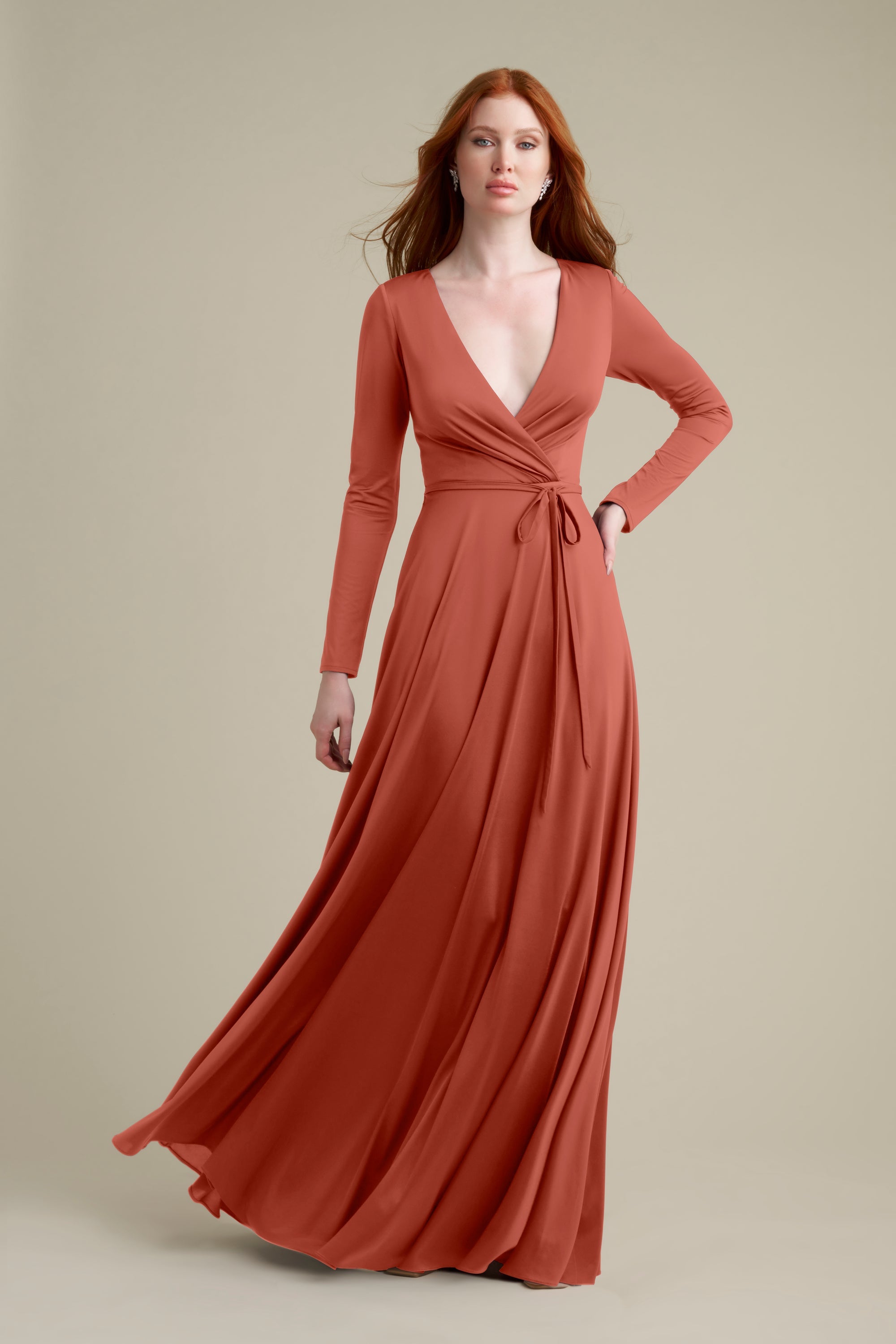 Willa is the perfect gown for your cool-weather wedding: a wrap dress effect finished with fitted, full-length sleeves.
